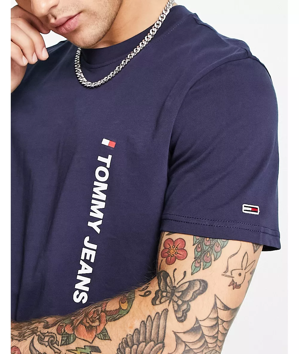 - Tommy Jeans verticle logo t-shirt in navy