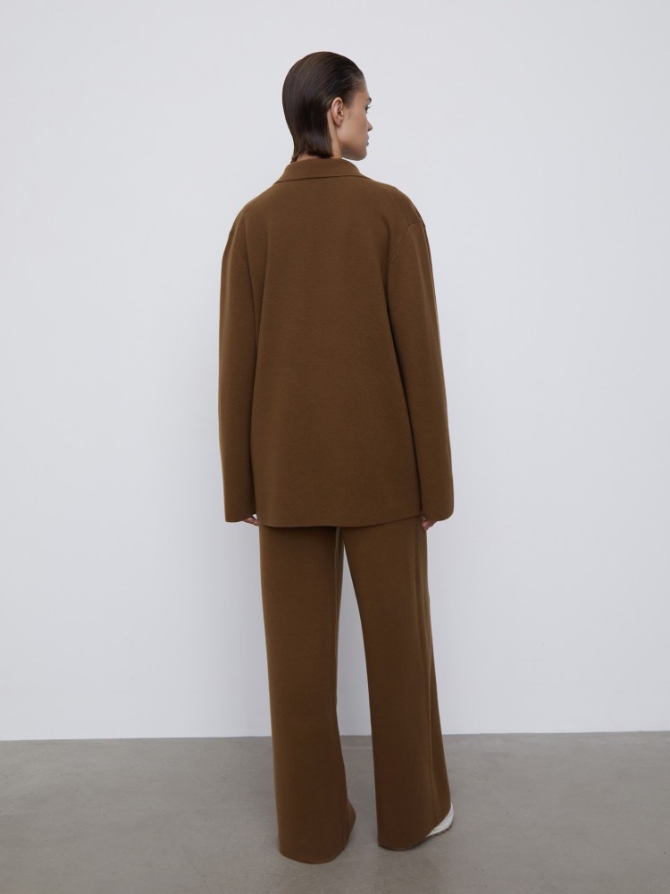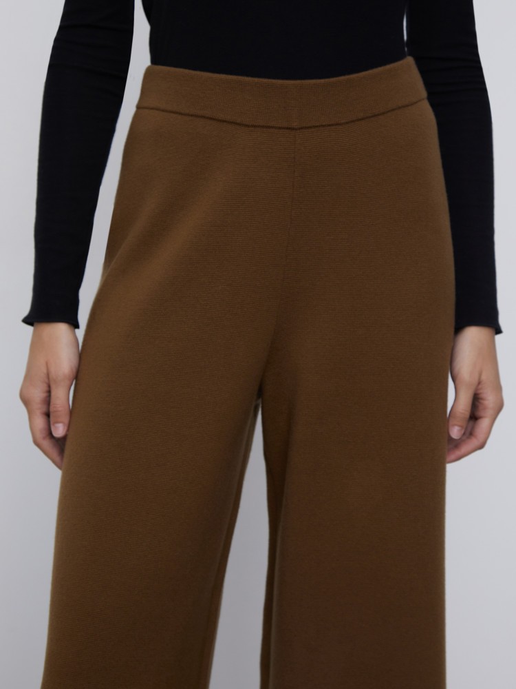 Широкие вязаные брюки сделали максимально лаконичными — без карманов и гульфика, с эластичным поясом. За практичность и комфорт отвечает плотный, похожий на текстиль, трикотаж из хлопка и шерсти мериноса. Благодаря специальной обработке шерстяной нити придали гладкость и прочность, поэтому брюки не скатываются и сохраняют форму.Сделано в Китае.