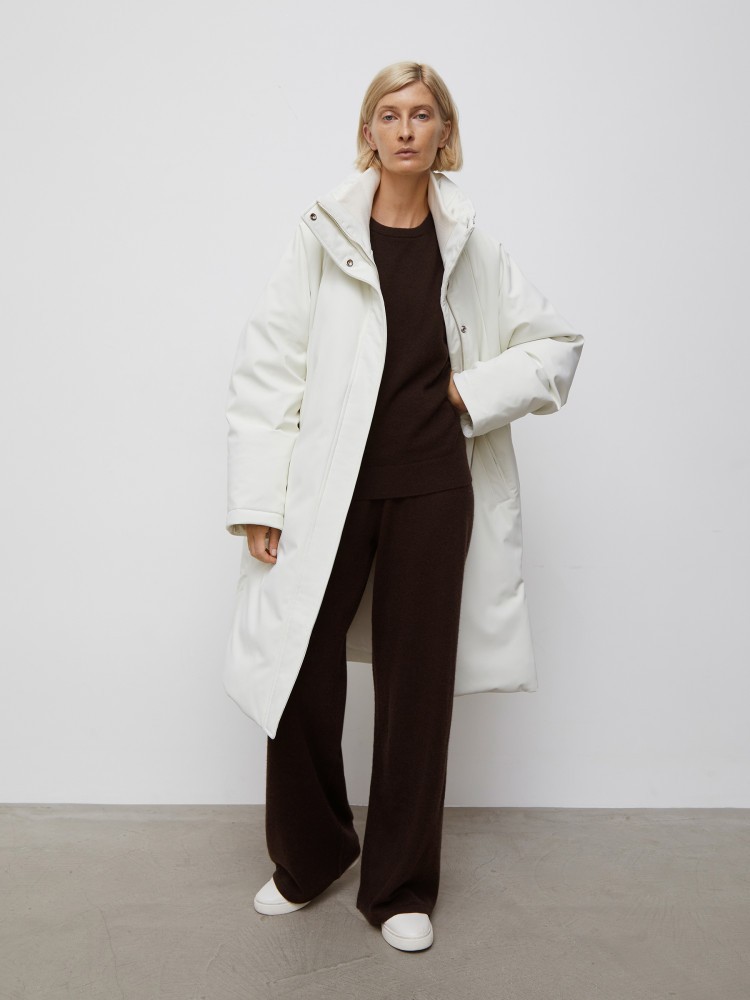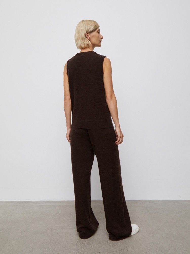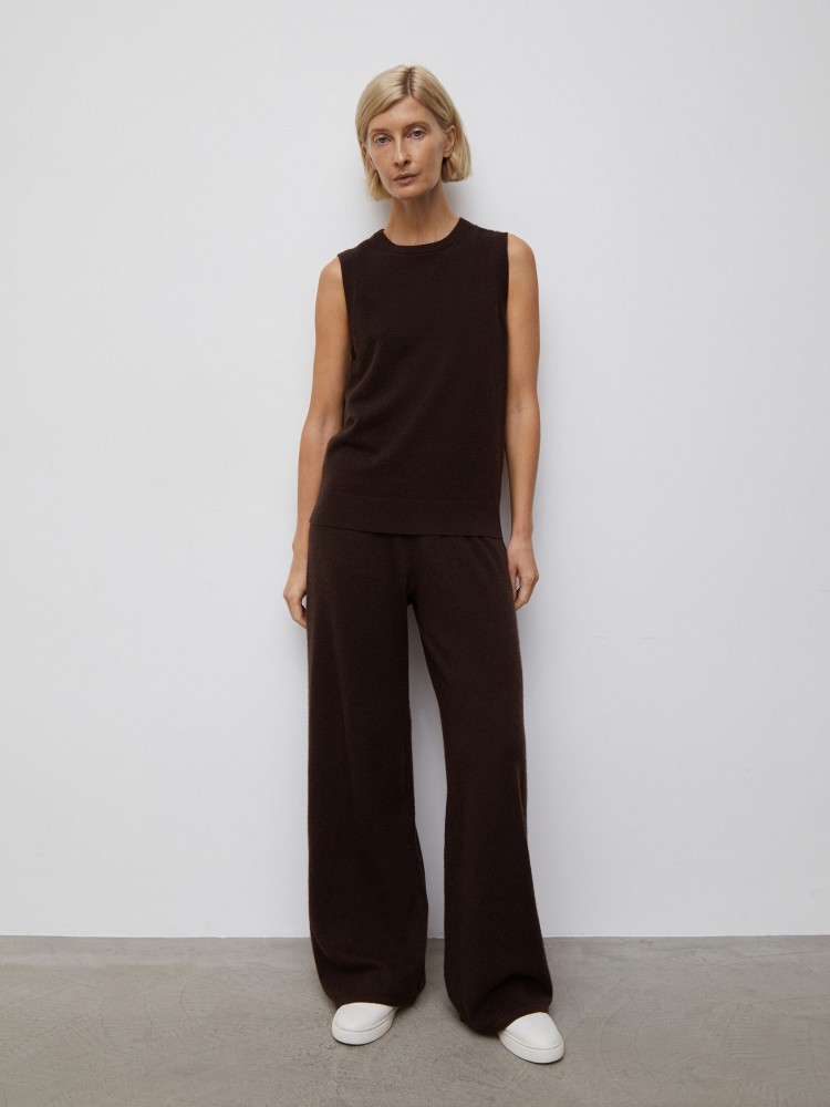 Широкие брюки из кашемира дарят ощущение тепла и легкости. Дополните образ кедами или сандалиями, а верх — может быть любым. Для модели выбрали тонкую невесомую пряжу: плотное переплетение делает брюки более долговечными и не прозрачными.Сделано в Китае.