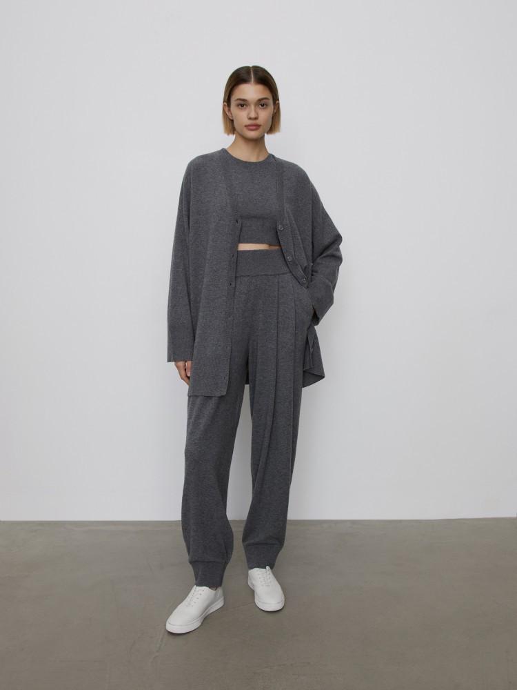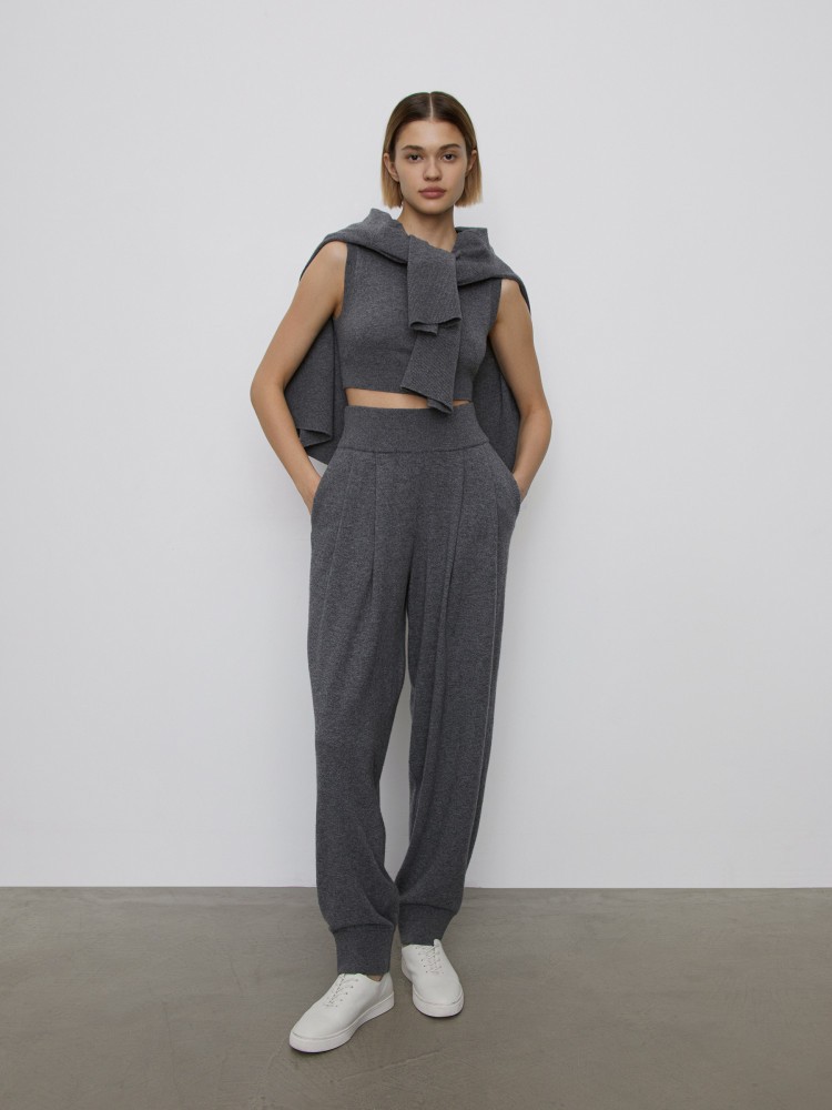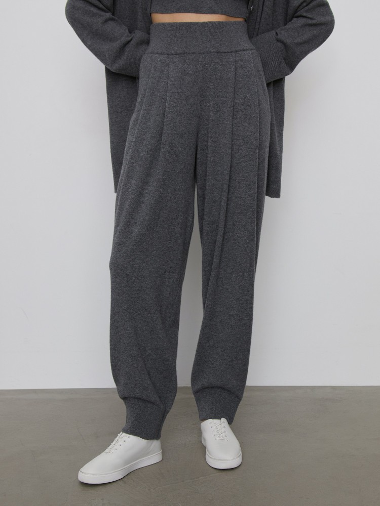Вязаные брюки-бананы — для смелых образов с укороченными топами или более формальных, с пиджаками. Тонкий и плотный трикотаж хорошо держит форму, а мягкая шерсть мериноса становится еще нежнее благодаря пушистым волокнам кашемира. При необходимости, пожалуйста, удаляйте пилли с помощью машинки по уходу за шерстью.Сделано в Китае.