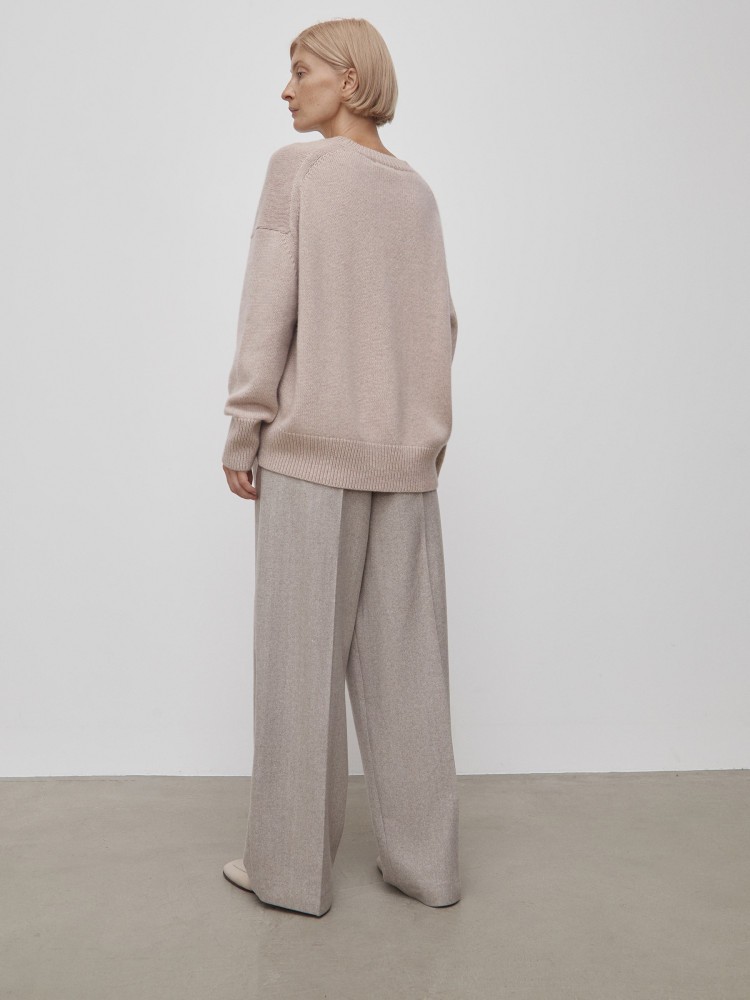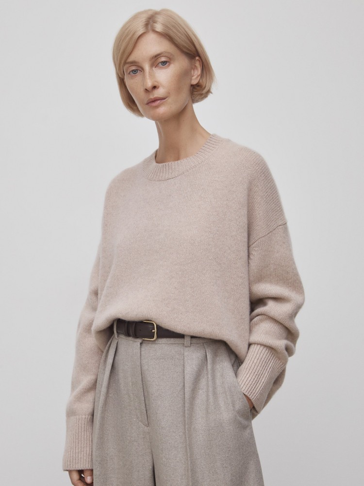 Уютный джемпер в стиле оверсайз из собранного вручную кашемира. Мы связали его в 4 нити, чтобы сделать плотным и долговечным, при этом сохранили природную пушистость невесомых волокон. При трении о шершавые поверхности пушинки могут скатываться в катышки, но вы легко уберете их с помощью машинки.