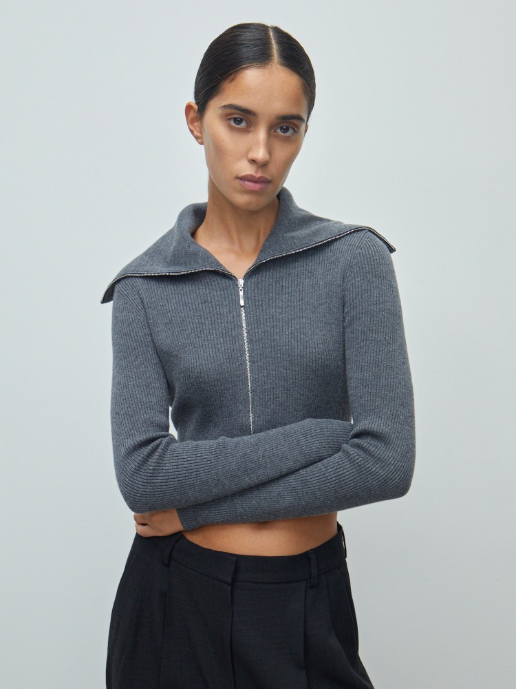 Укороченный кардиган с широким отложным воротником предоставит возможность не расставаться с любимыми кроп-топами даже зимой. Благодаря рибовому переплетению модель садится точно по фигуре и не теряет форму со временем, а специально подготовленная шерсть мериноса дарит ощущение мягкости и тепла.Сделано в Китае.