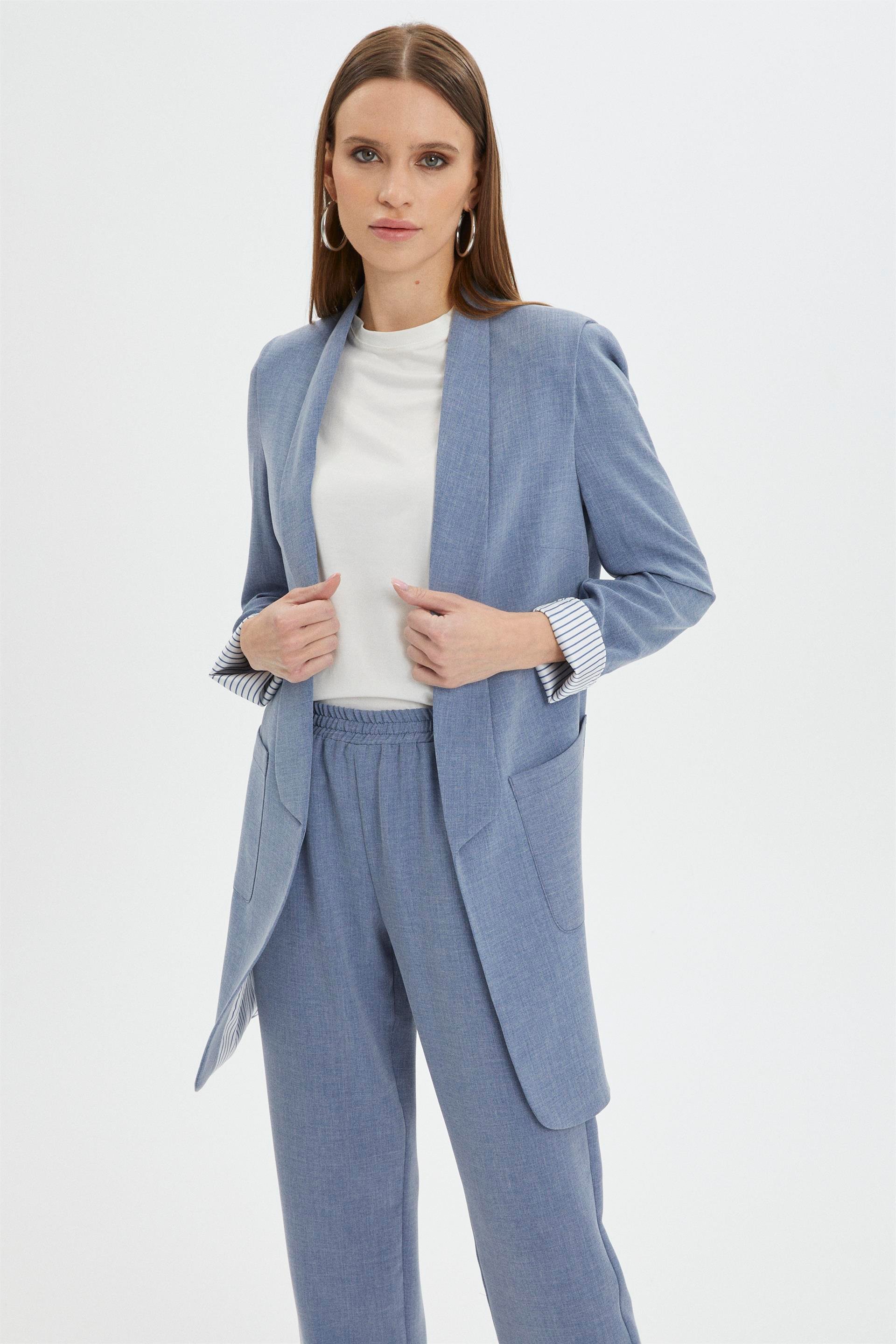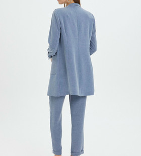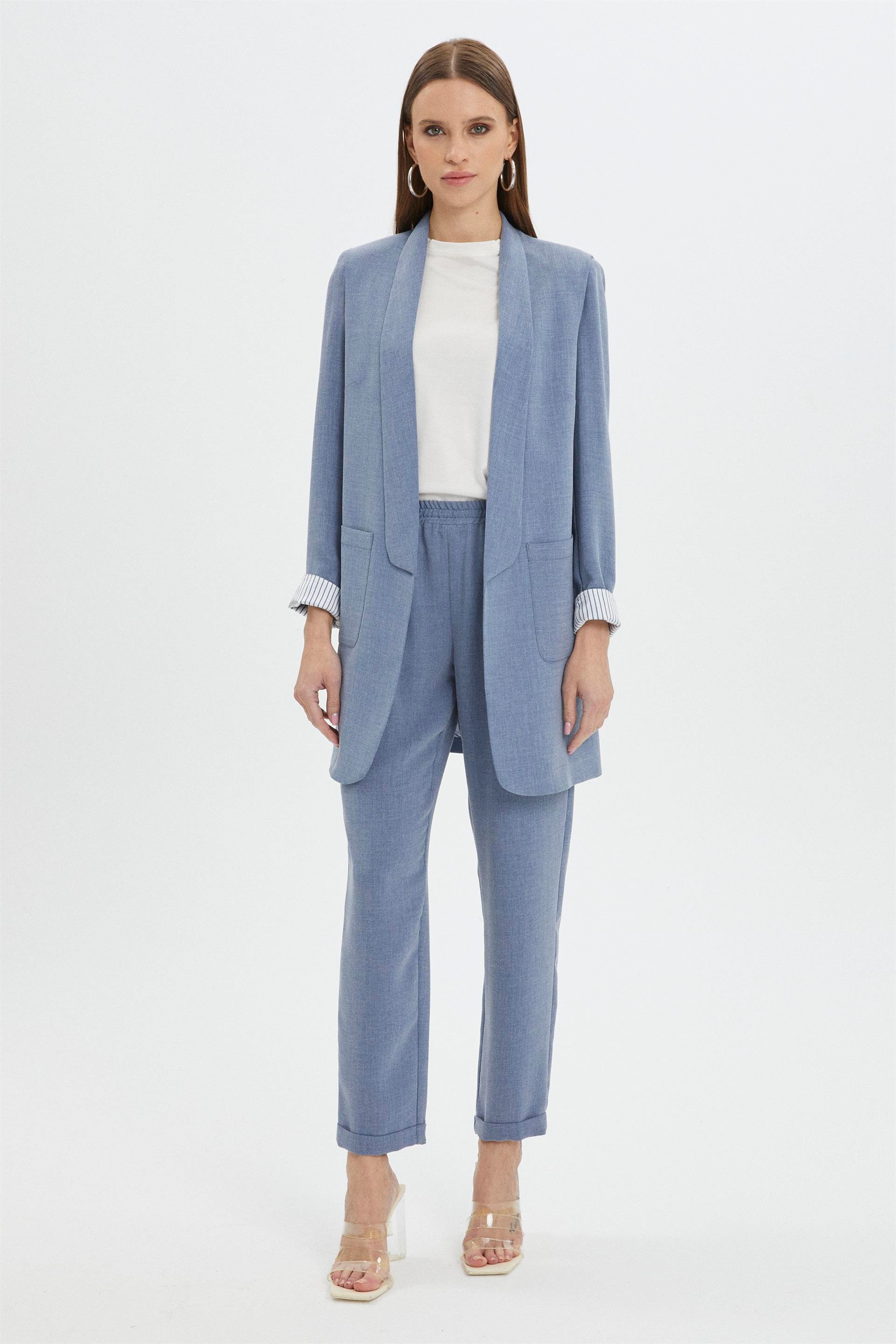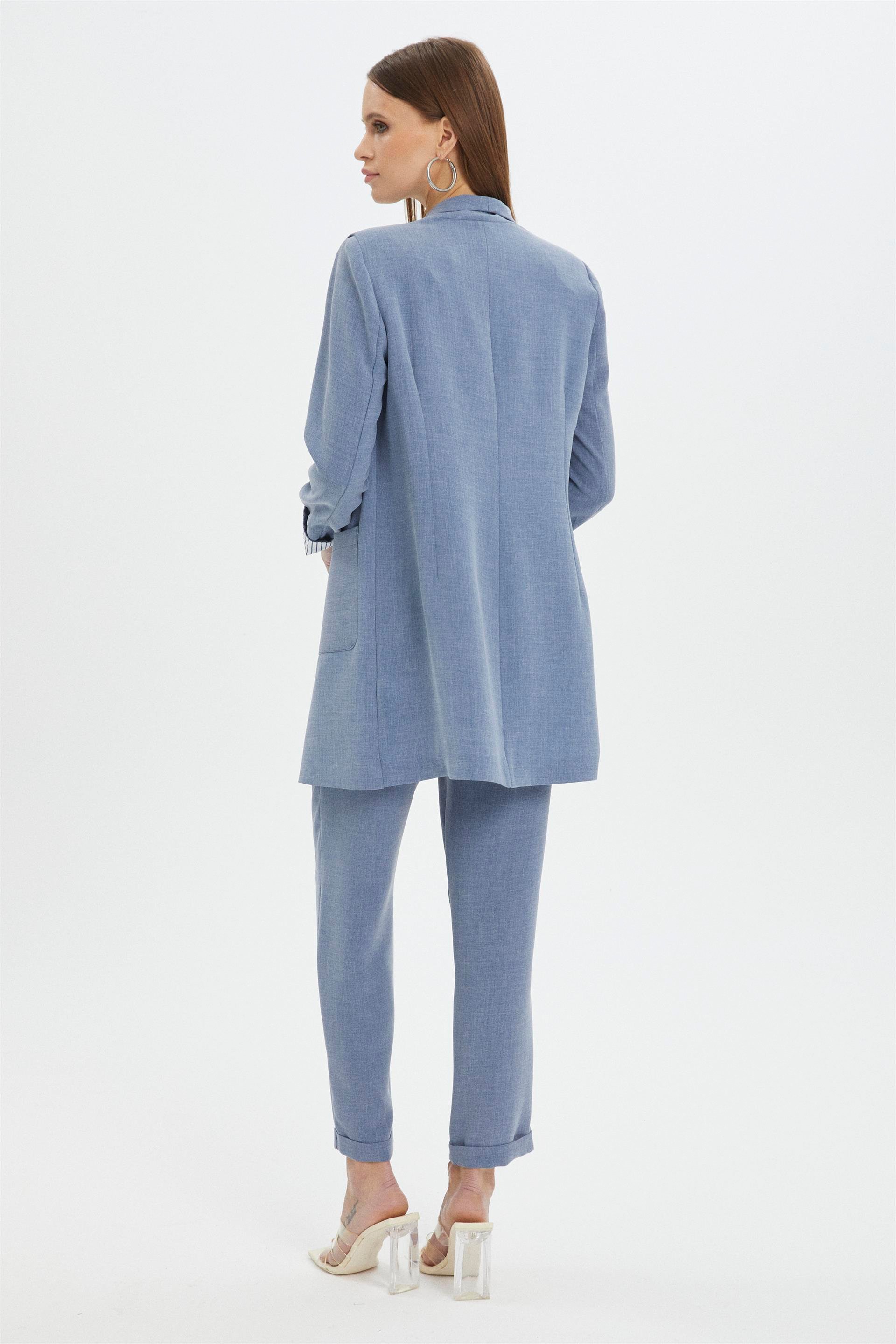 Классический костюм цвета индиго обычно состоит из пиджака с карманами и брюк. Пиджак обычно имеет два или три кармана, а брюки - прямой крой. Такой костюм отлично подходит для официальных мероприятий или повседневной носки. Цвет индиго всегда выглядит элегантно и подходит практически к любому наряду. Костюм имеет карманы, что придает ему некоторую функциональность и стиль, а детальные брюки добавляют ему изысканности и утонченности.