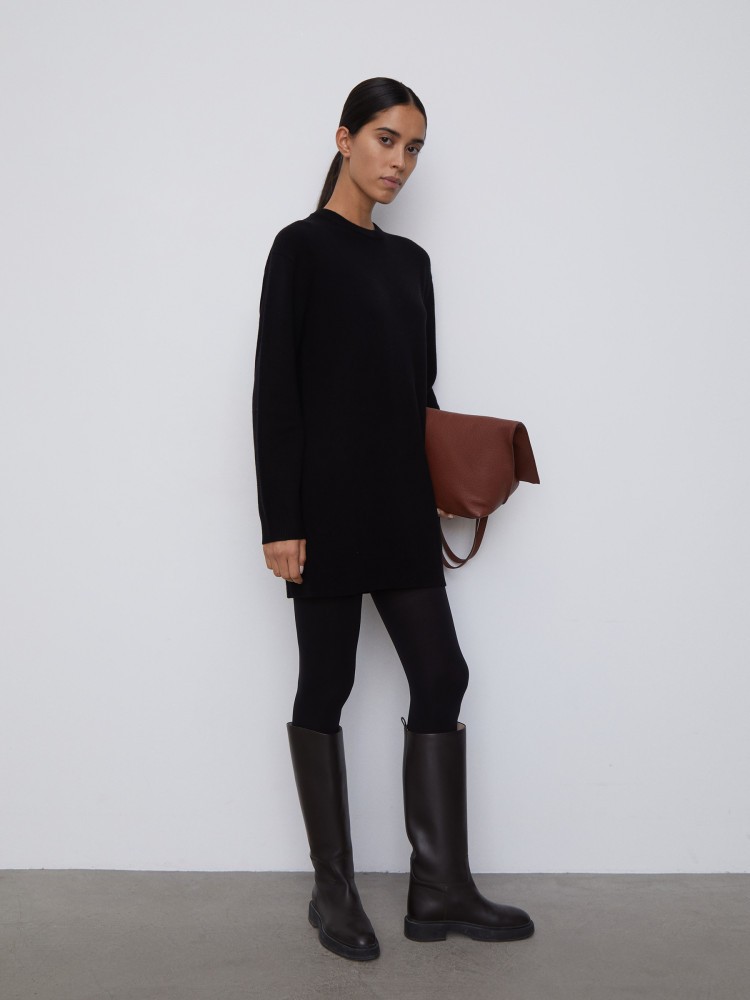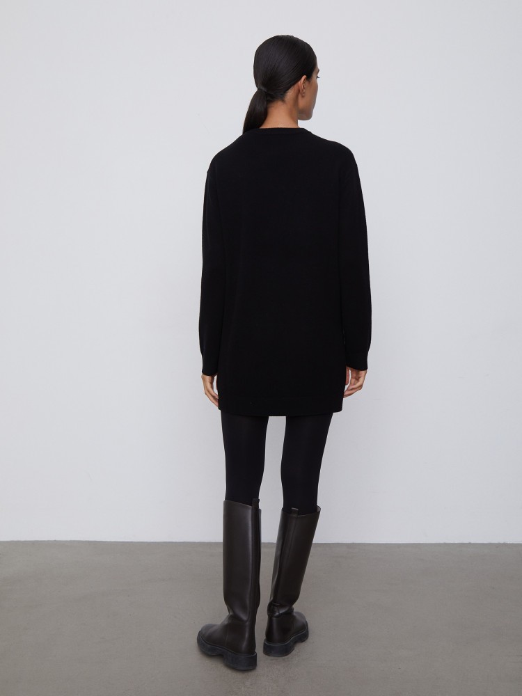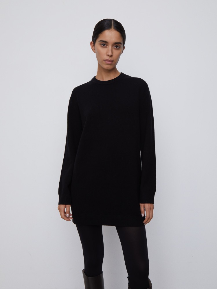 Минималистичное платье для образов с высокими сапогами-трубами, джинсами и кроссовками. Связано из мягкой шерсти мериноса с добавлением нежных волокон кашемира: плотный и одновременно тонкий трикотаж комфортно облегает силуэт и хорошо удерживает тепло. Пушистая нить может скатываться при трении о шершавые поверхности. Пожалуйста, удаляйте пилли машинкой по уходу за шерстью.Сделано в Китае.