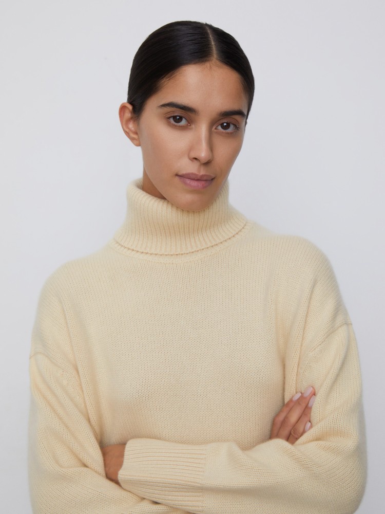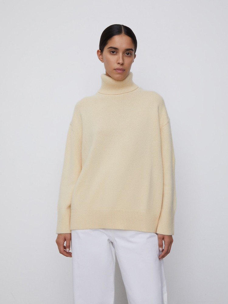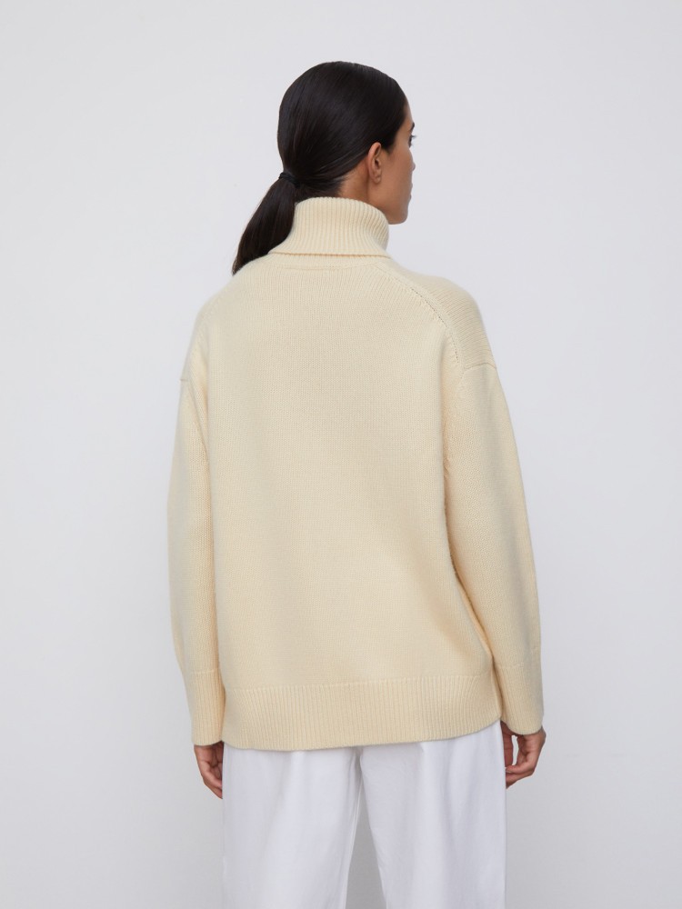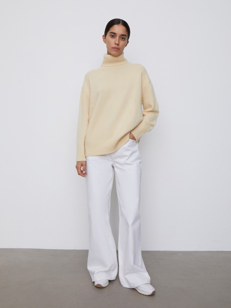 Свитер из кашемира и шерсти — ключевая модель в коллекции 12 STOREEZ. В этом году мы освежили силуэт и сделали свитер симметричным, но главное изменение — в пряже. Мы перешли на еще более тонкий и легкий кашемир и стали вязать свитер в пять нитей, он стал еще мягче, плотнее и меньше подвержен пиллингу. При необходимости, пожалуйста, удаляйте пилли с помощью машинки по уходу за шерстью.Сделано в Китае.