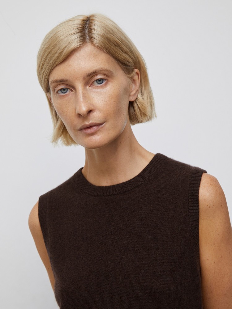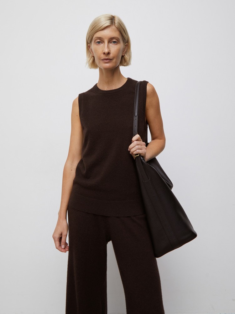Аккуратный топ из невесомого кашемира можно сделать частью брючного костюма или стилизовать для вечера с юбкой из кожи. Универсальную модель связали из тонкой и пушистой нити — достаточно плотно, чтобы топ не просвечивал и создавал ощущение комфорта.Сделано в Китае.