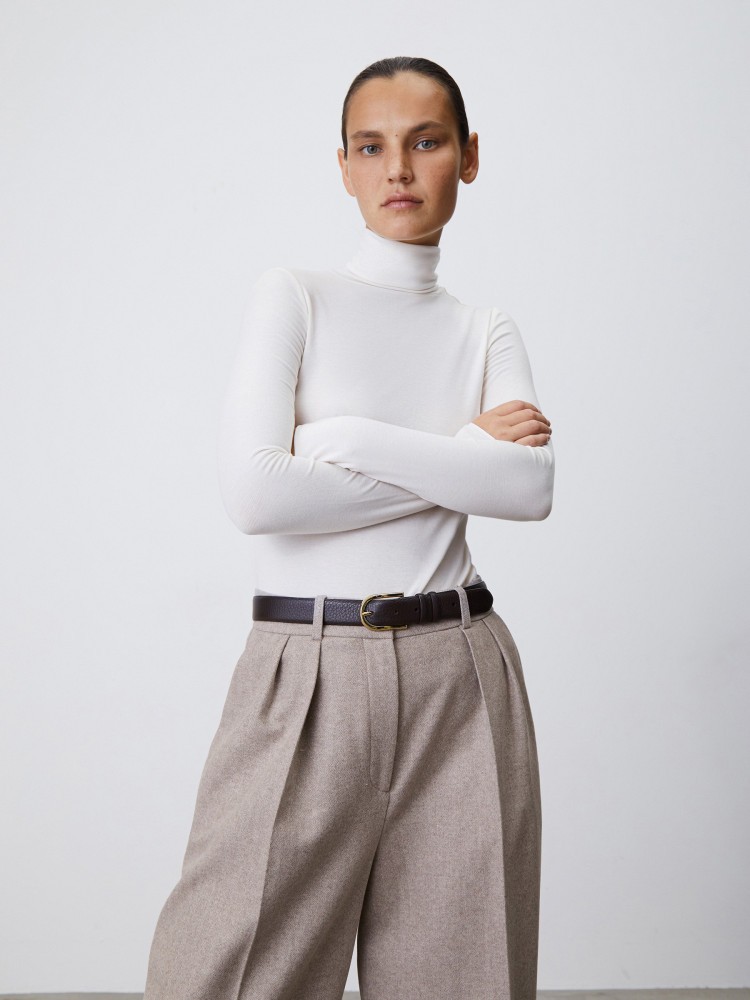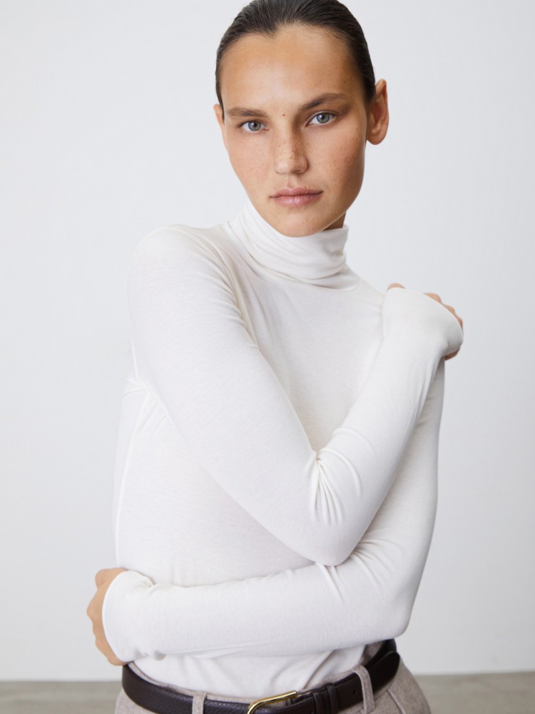 Базовая водолазка — согревающая и незаметная под одеждой — для многослойных образов с джемперами, жакетами и кардиганами. Нежный к коже трикотаж с содержанием шерсти не подвержен пиллингу и хорошо сохраняет форму, а силиконовая тесьма помогает фиксировать края водолазки и рукавов. Рекомендуем подбирать белье в тон.Сделано в Китае.