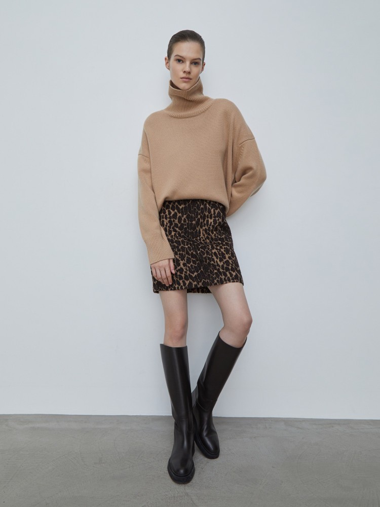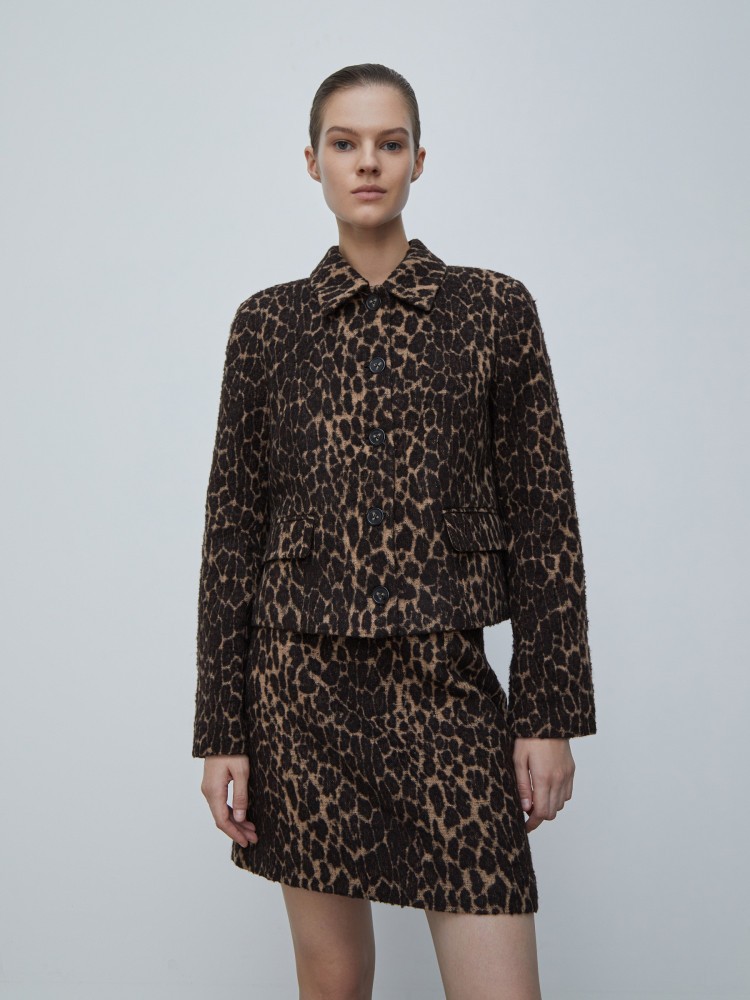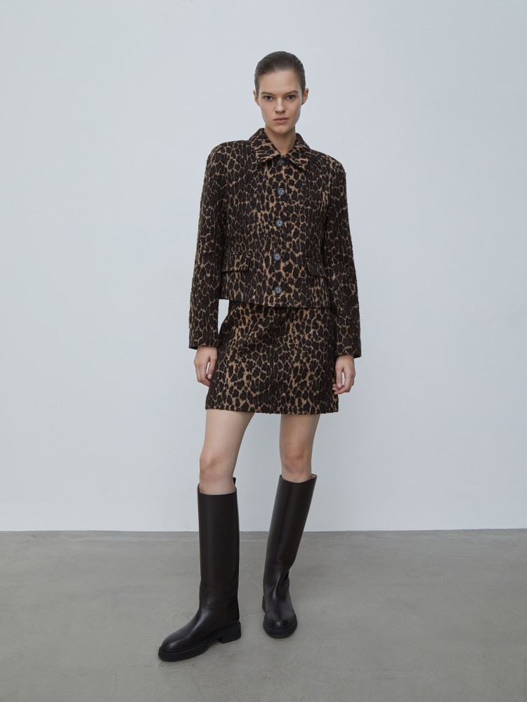 Лаконичная юбка с анималистичным принтом. Материал выпущен итальянской фабрикой, основанной в 1946 году. Сегодня она специализируется на шерстяных тканях из переработанных волокон, снижая углеродный след, расходы воды и света. При этом качество материалов не уступает аналогам из первичной шерсти. На подкладке.Сделано в Турции.