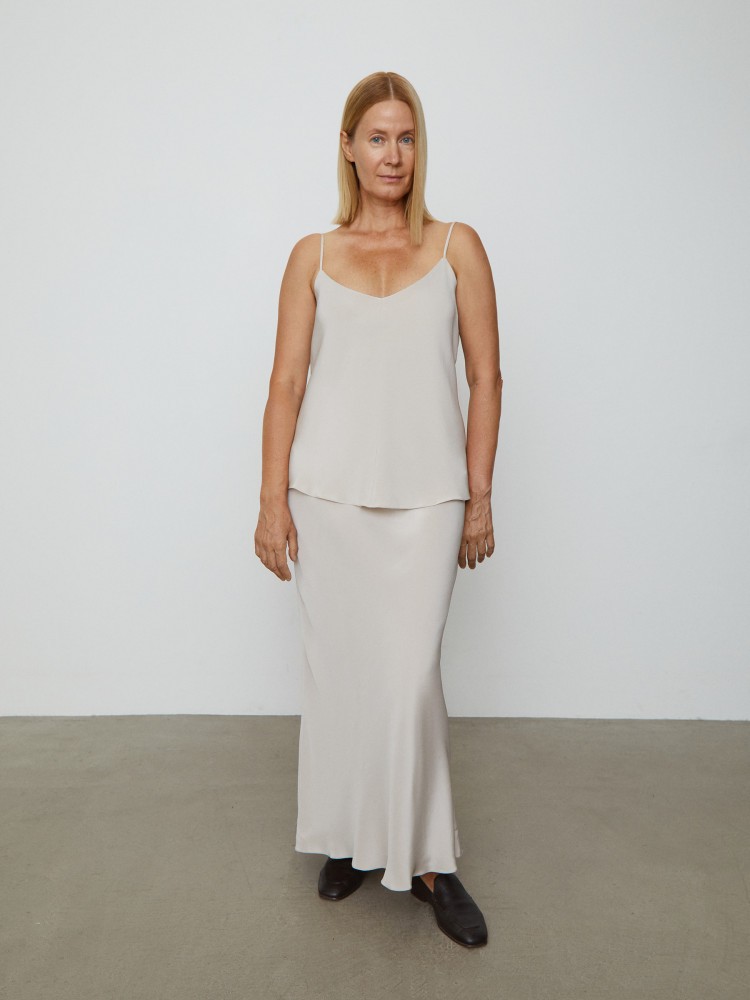 Прямая юбка с эластичным поясом скроена по косой — это подчеркивает красоту и блеск струящегося материала. Любимая модель покупательниц в этом сезоне вернулась из еще более плотного (30 mm) и долговечного натурального шелка. 100% Mulberry шелк — самый ценный вид шелковых волокон. Такой шелк сияет и переливается при любом освещении, а его нити тоньше, легче и прочнее аналогов