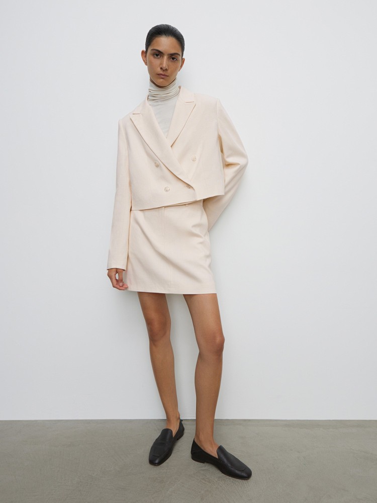 Лаконичная юбка мини — вневременная модель, которую легко вписать в гардероб. Для модели выбрали португальскую костюмную ткань, созданную по инновационной технологии: едва заметные узелки и утолщения нитей придают шелковистому материалу визуальное сходство со льном. На подкладке.Сделано в России.