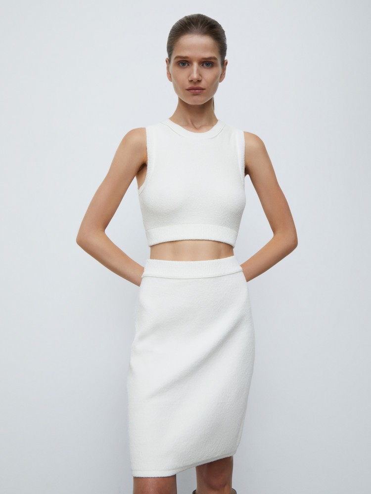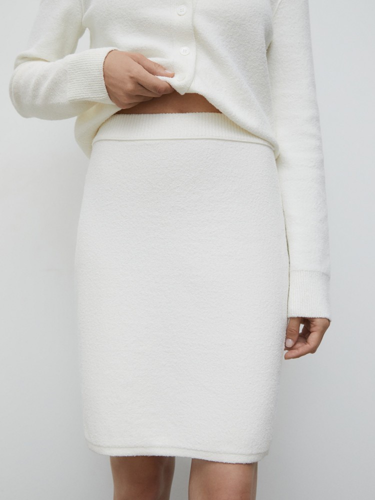 Вязаная юбка из легкой хлопковой пряжи — лаконичная и одновременно акцентная благодаря «махровой» фактуре трикотажа. Комфортно садится на талии и хорошо держит форму за счет плотного переплетения тонких нитей.Сделано в Китае.