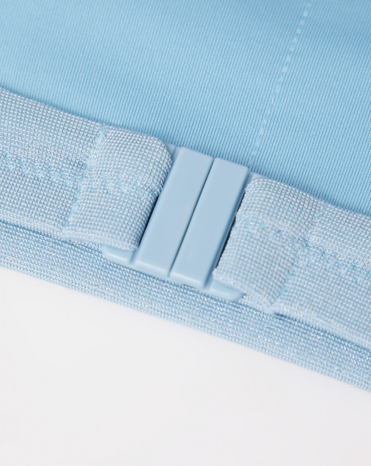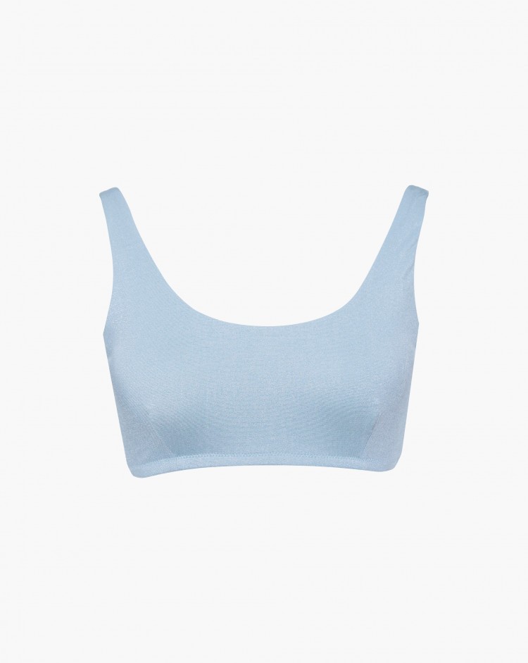 Лиф-топ. Плотная ткань с серебристой нитью люрекса поблескивает на солнце, а силиконовая резинка под грудью обеспечивает дополнительную поддержку.
