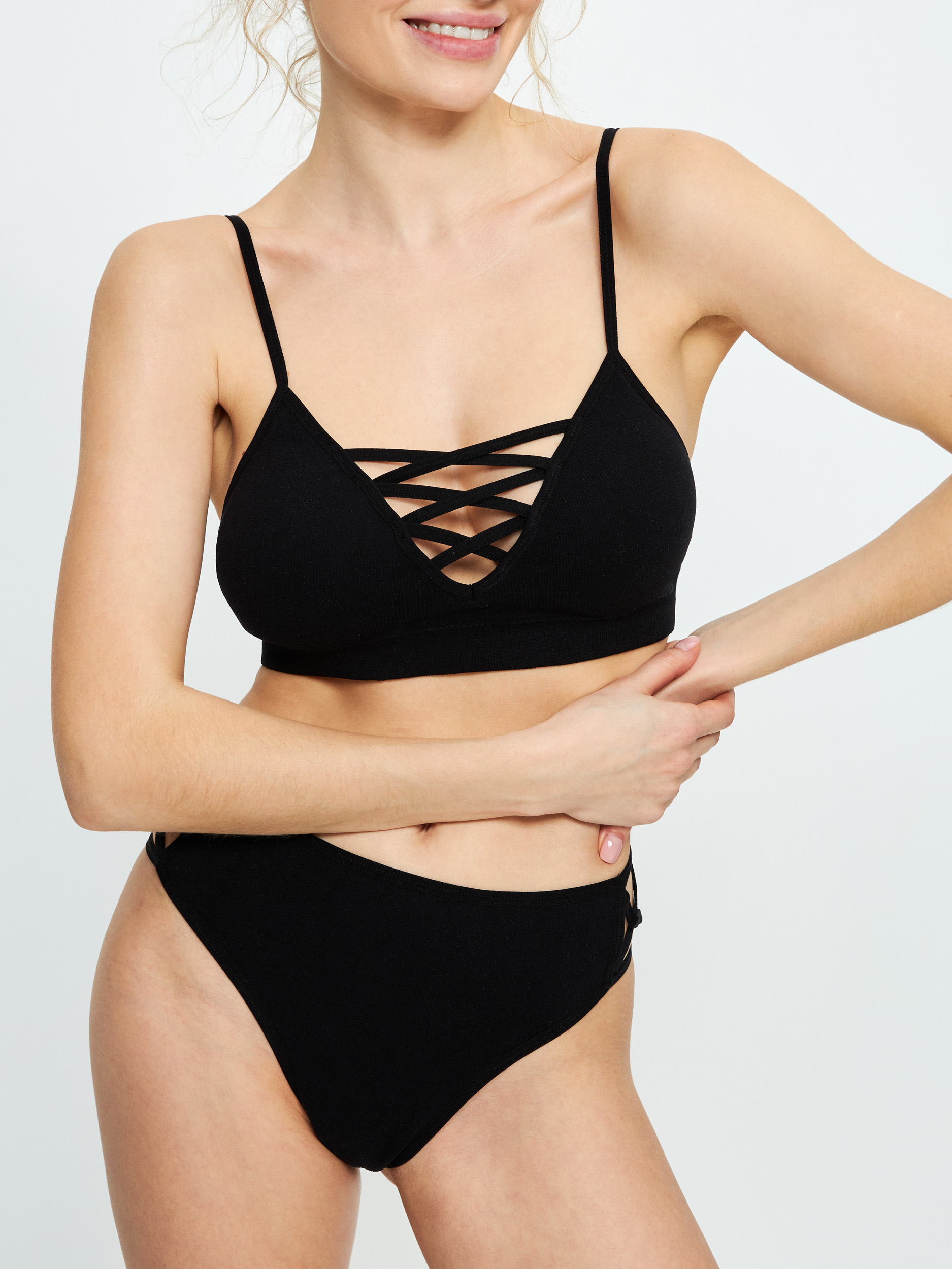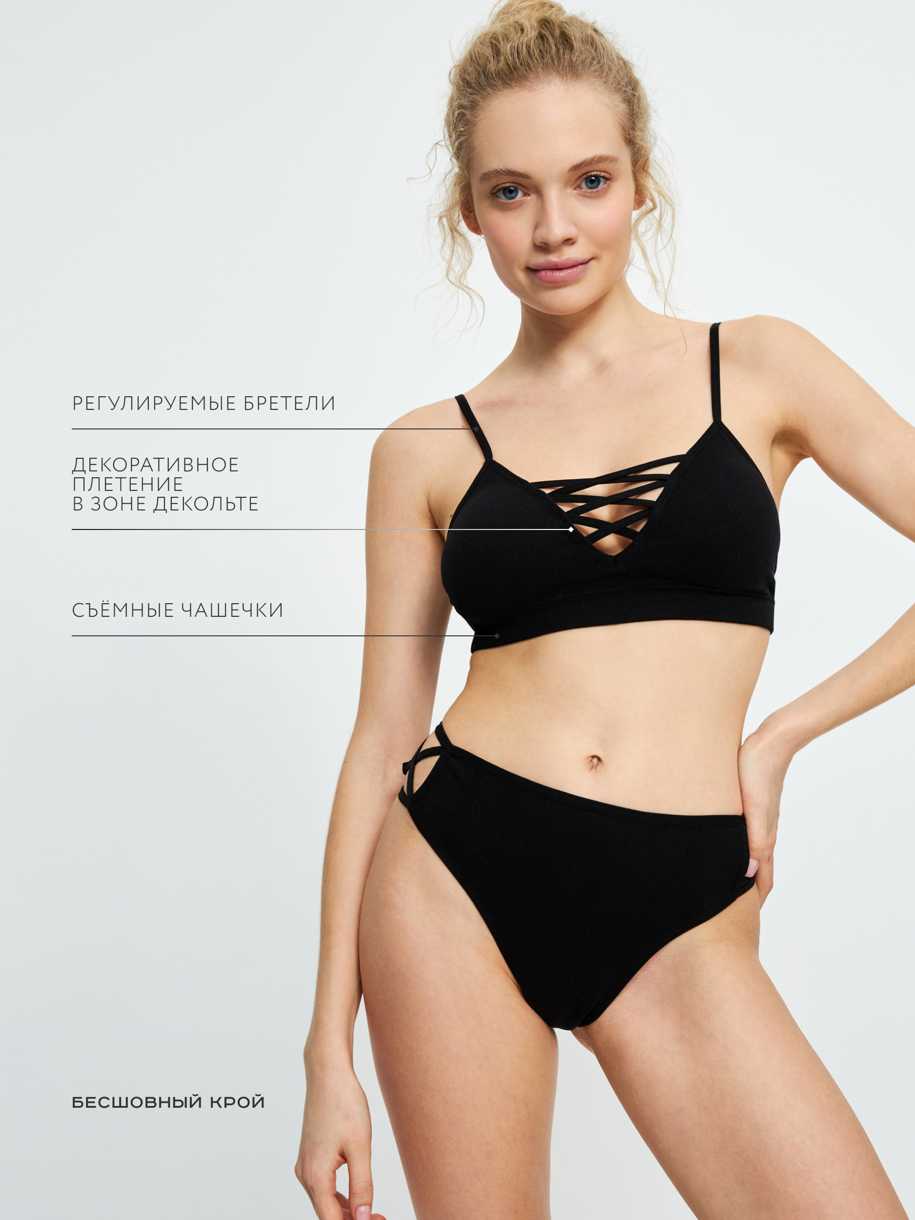 Параметры: Ткань: в рубчик; Чашка: вставные чашечки; Вид бюстгальтера: бесшовный; Вид застежки, бельё: без застежки; Вид бретелей: регулируемые