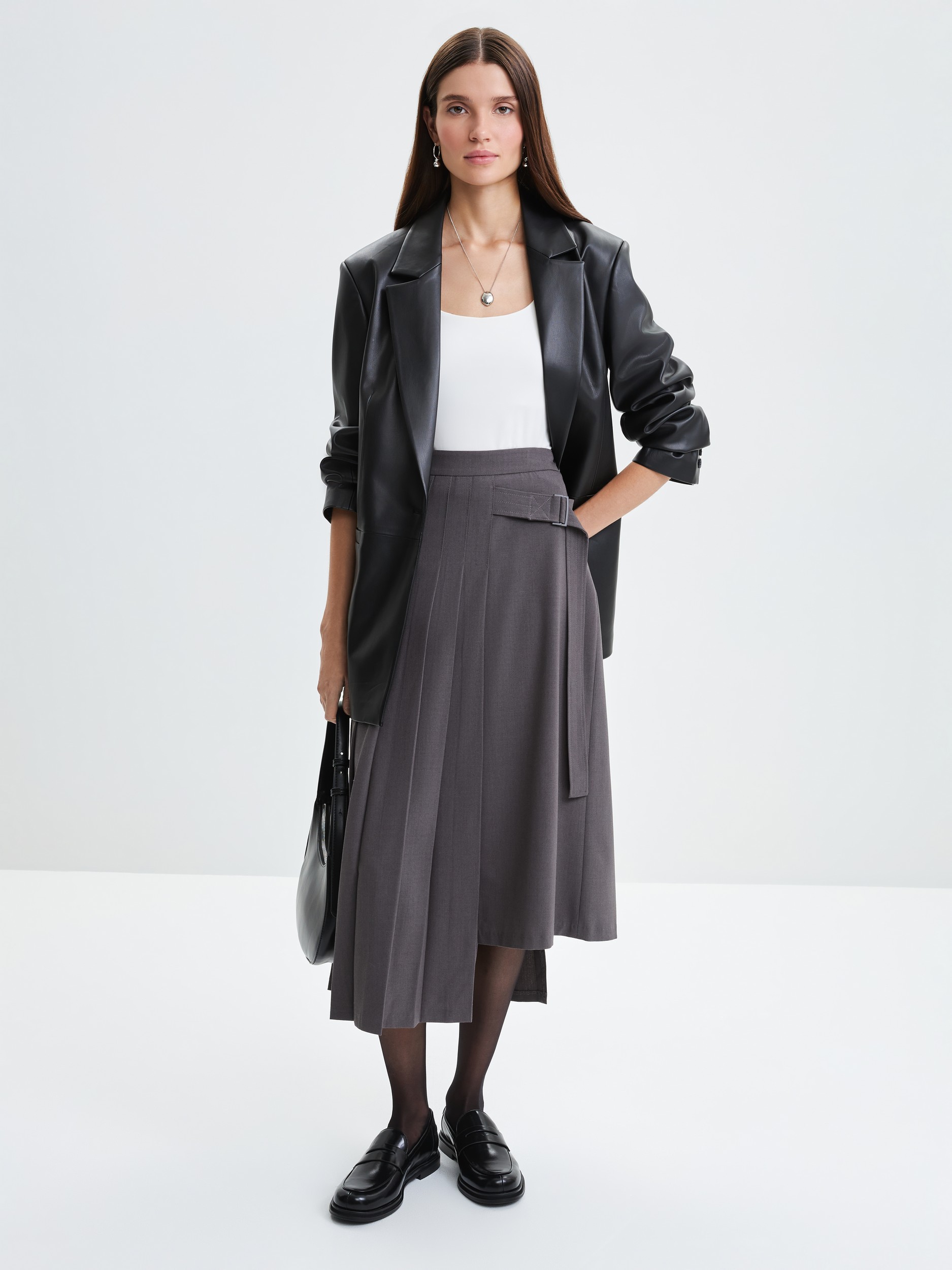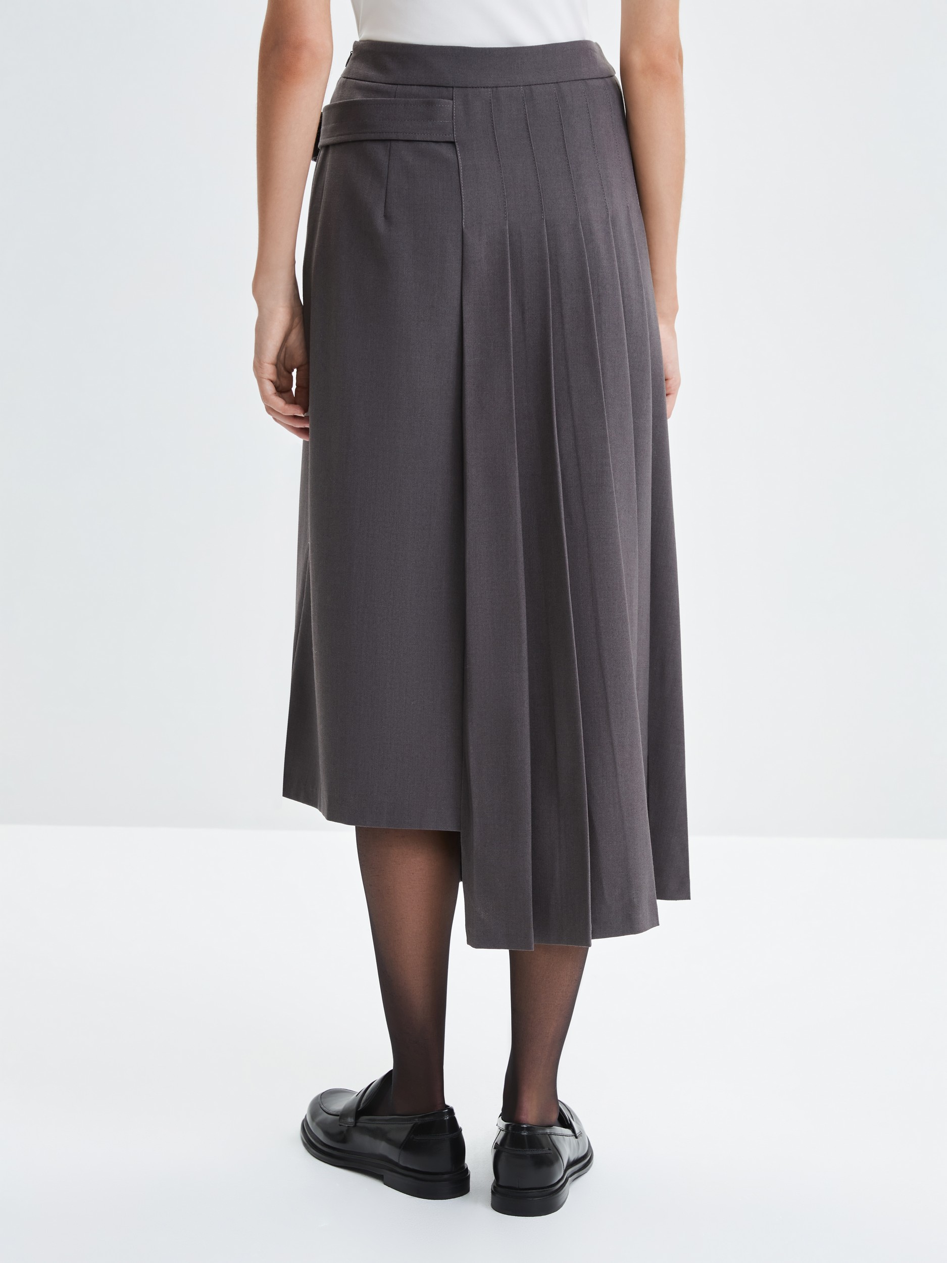 Параметры: Тип карманов: без карманов; Длина платья/юбки: миди; Модель юбки: ассиметричный низ; плисированная