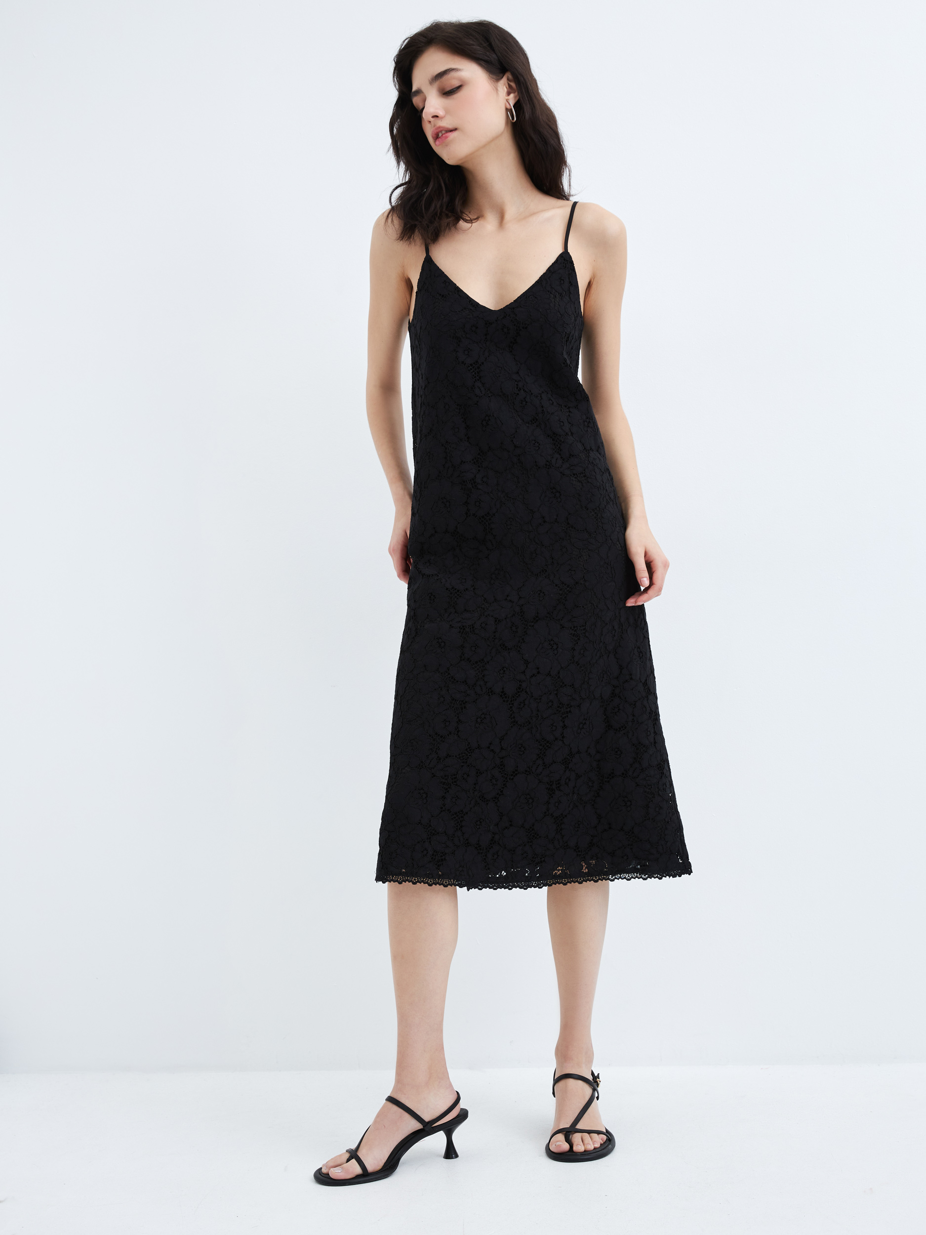 Параметры: Вырез горловины: V образный; Застежка: без застежки; Стиль: Вечерний; Повседневный; Тип рукава: на бретелях; Тип карманов: без карманов; Декор: отсутствует; Силуэт: полуприлегающий; Длина платья/юбки: ниже колена