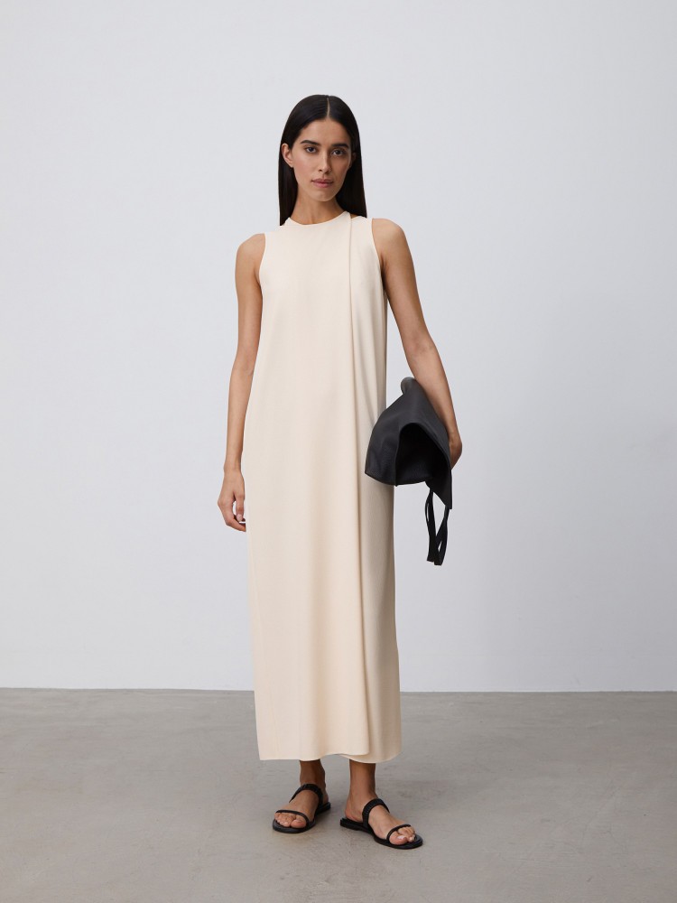Свободное платье из легкой струящейся ткани можно стилизовать как вечернее или носить как верхний слой. Глубокий запах красиво раскрывается, когда вы гуляете или отдыхаете на летней террасе, а несложный в уходе материал позволяет захватить платье с собой в командировку или отпуск. Без застежки.Ткань может просвечивать, рекомендуем подбирать белье в тон.Сделано в России.