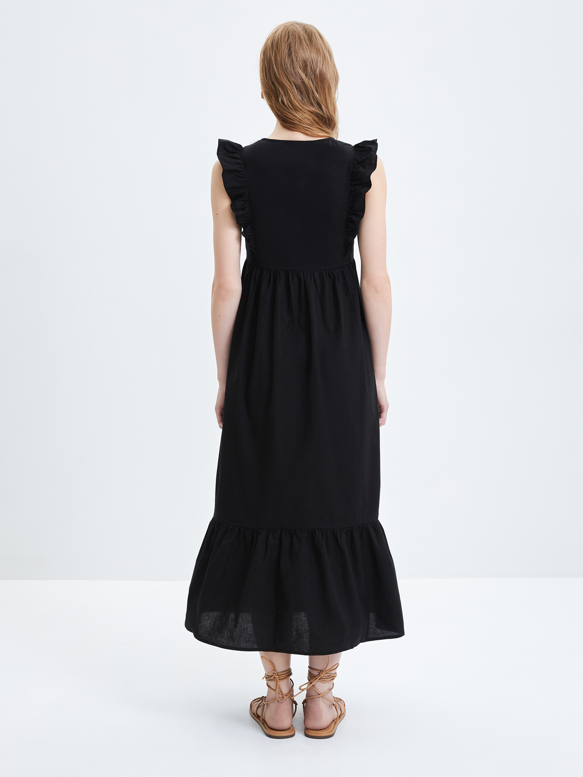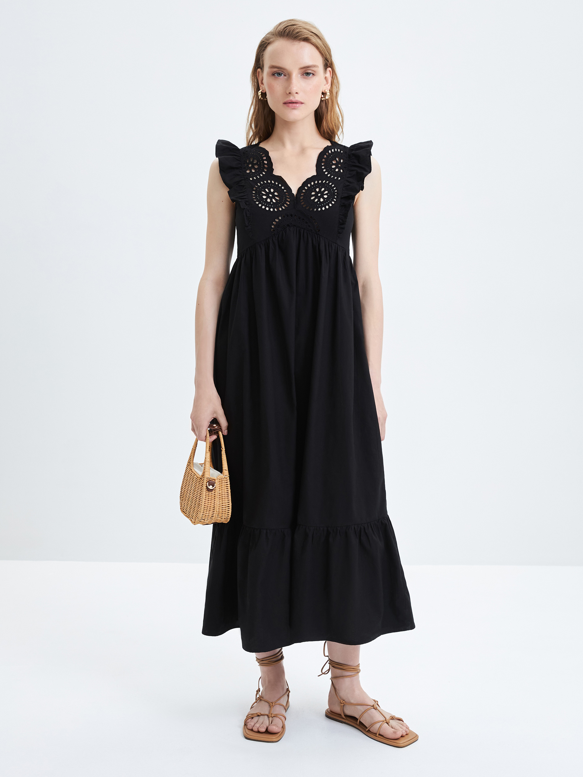 Параметры: Вырез горловины: V образный; Декор: аппликация; Застежка: без застежки; Силуэт: свободный; Тип карманов: без карманов; Тип рукава: без рукавов; Стиль: Повседневный; Длина платья/юбки: макси