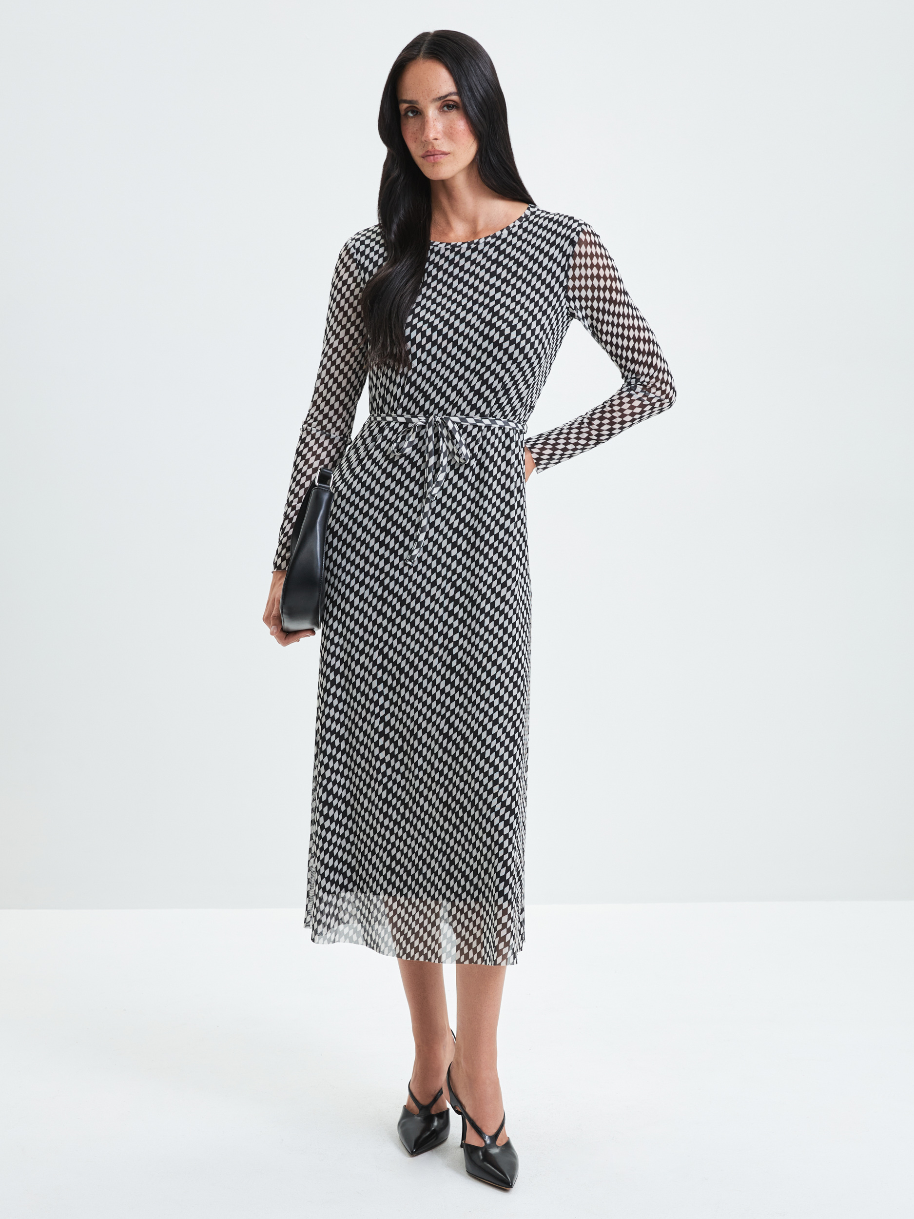 Параметры: Вырез горловины: округлый; Застежка: без застежки; Тип рукава: длинный; Стиль: Повседневный; Тип карманов: без карманов; Декор: отсутствует; Силуэт: полуприлегающий; Длина платья/юбки: миди