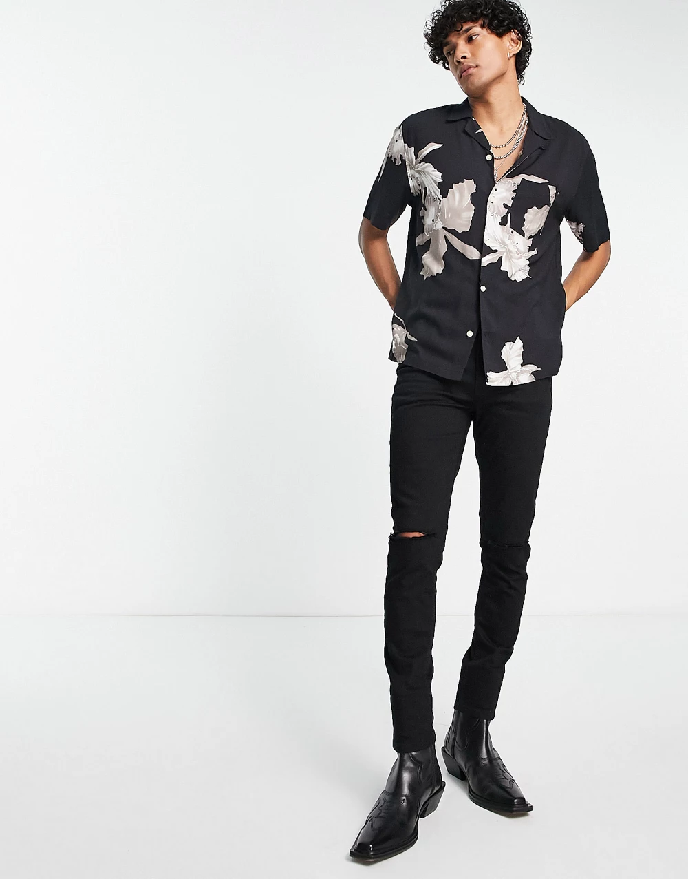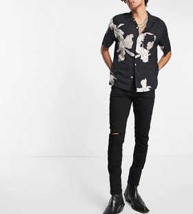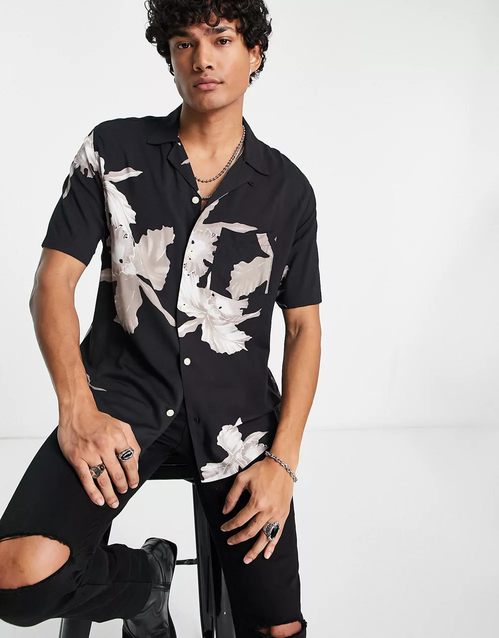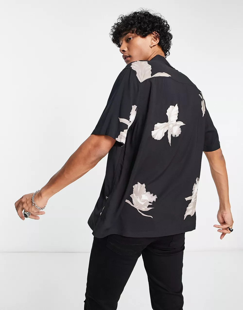 Levi's slouchy shirt in black with pink floral print