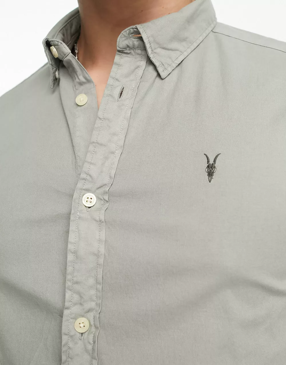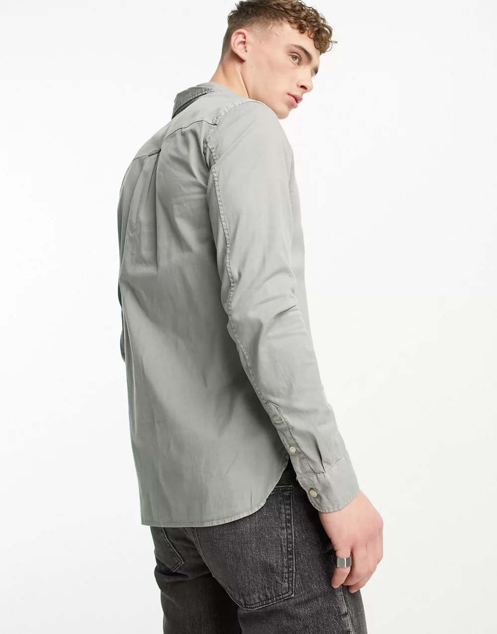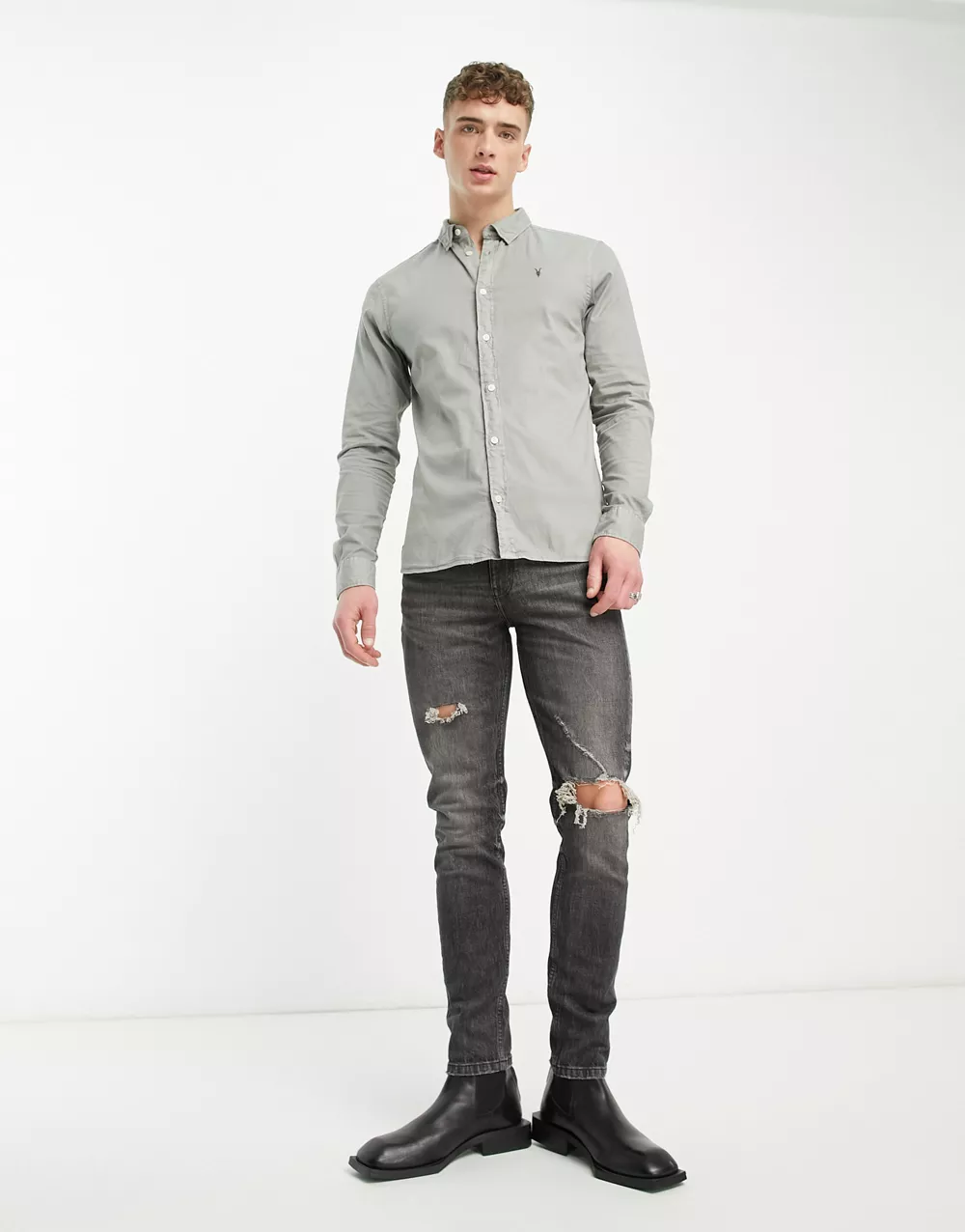 AllSaints Hawthorne stretch cotton long sleeve shirt in navy