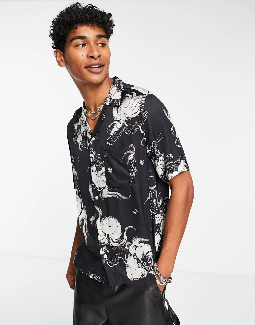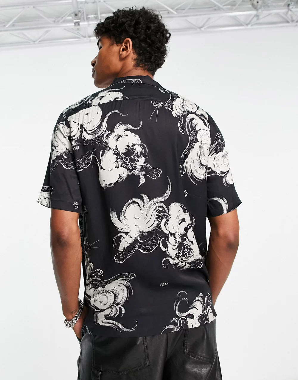 AllSaints Wilt long sleeve top in washed black with back print Exclusive to ASOS 2755735115-50