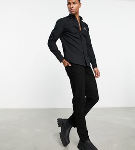 Polo Ralph Lauren slim fit pique grandad shirt with pony logo in navy