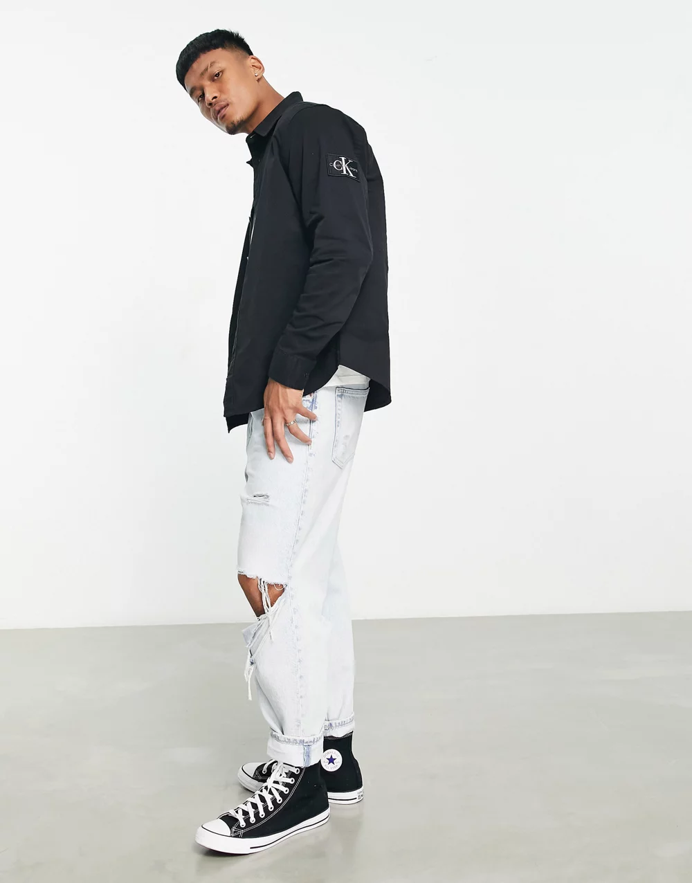 Levi's slouchy shirt in black with pink floral print
