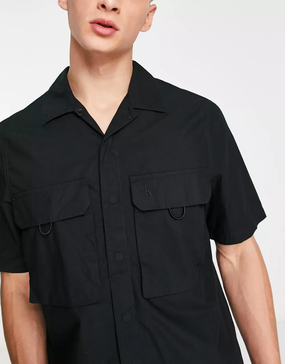 Calvin Klein Jeans bold logo colourblock relaxed fit half zip sweatshirt in black