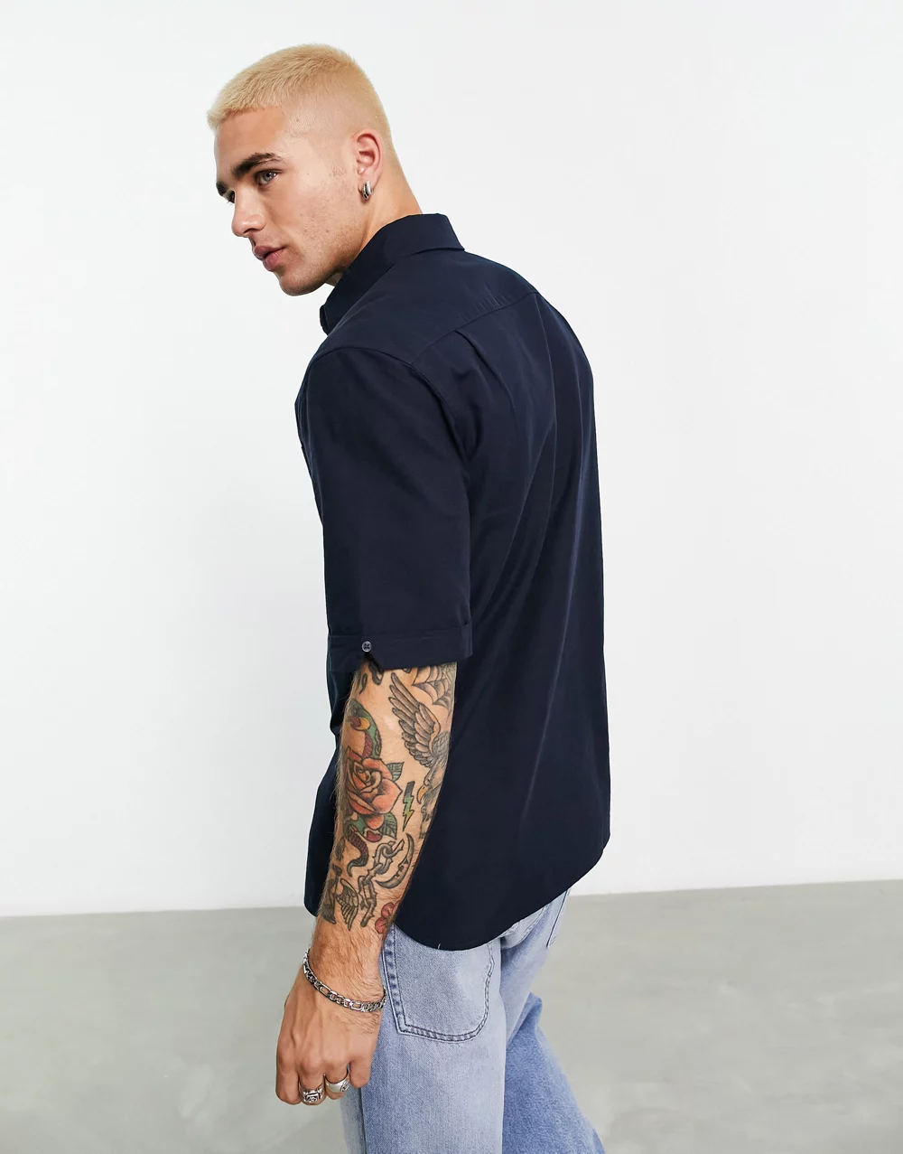 AllSaints Dendritic short sleeve shirt in black with floral print