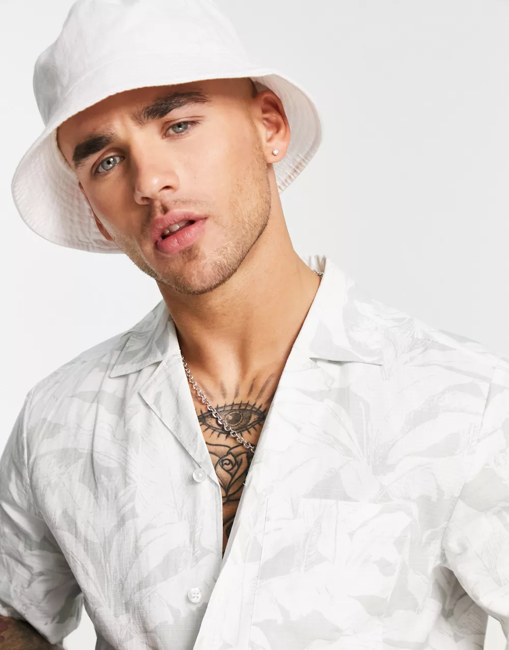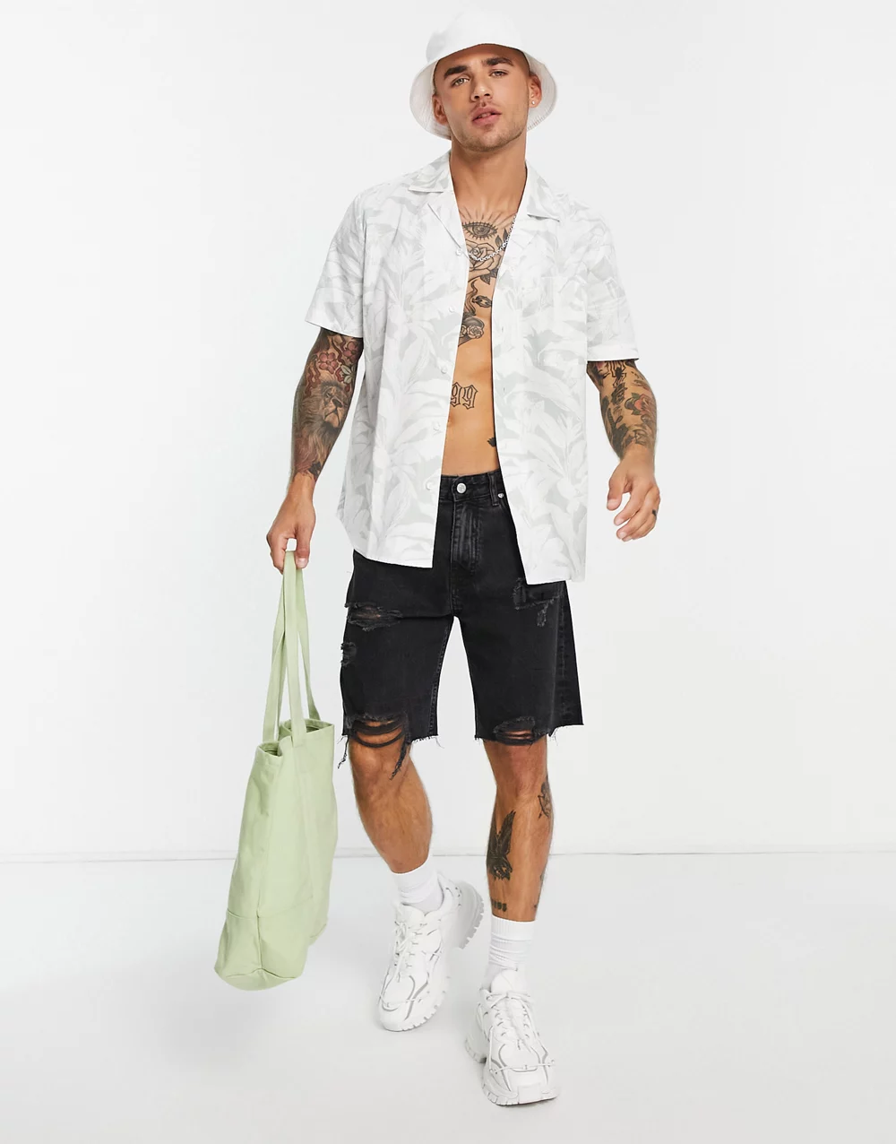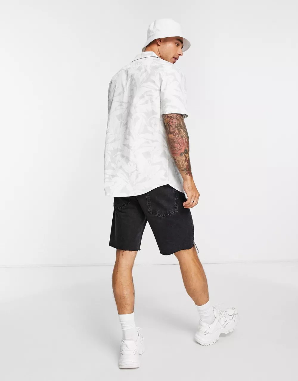 AllSaints Newrose long sleeve check shirt in off white and grey with back print