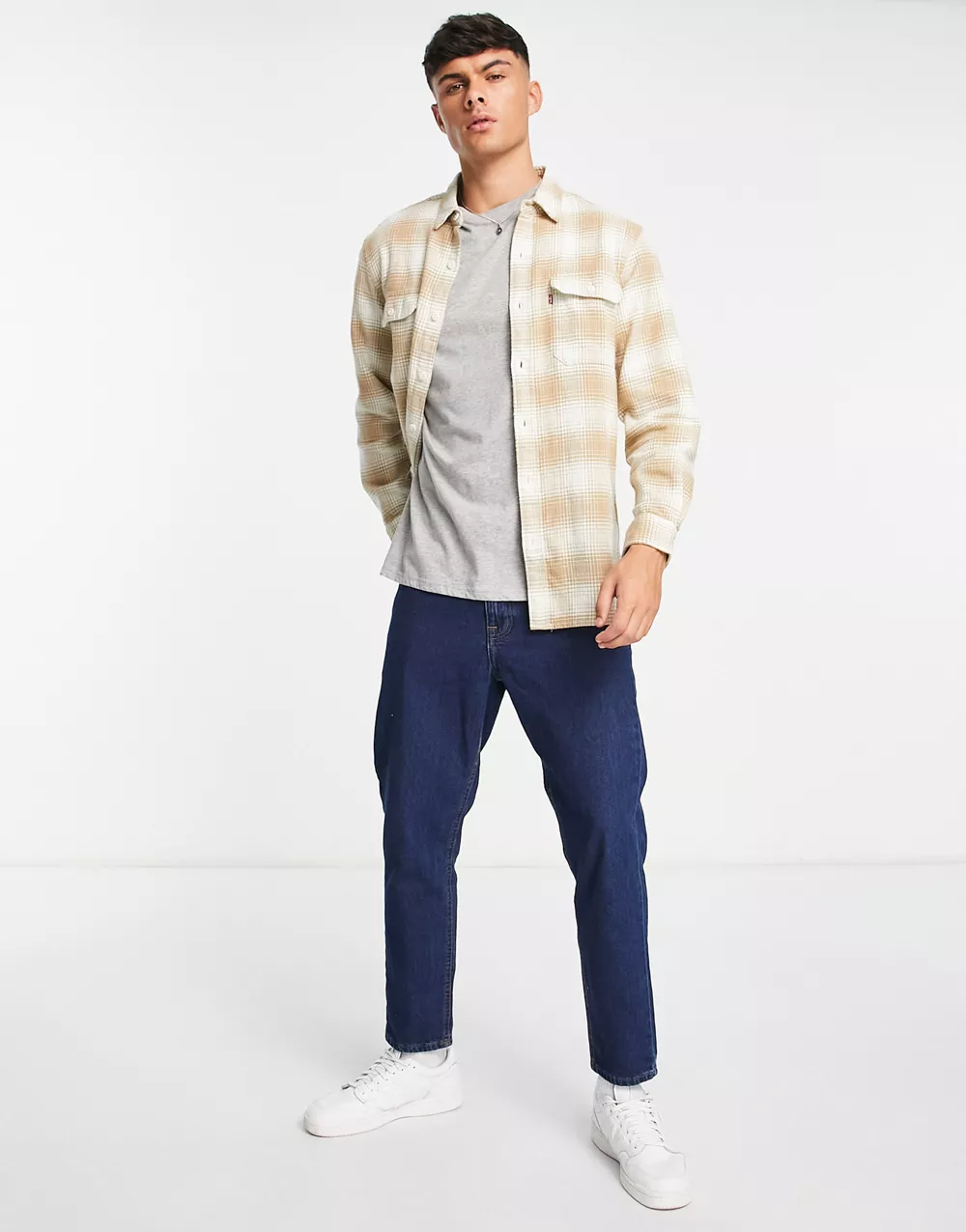 Calvin Klein Jeans badge logo shadow check overshirt in light grey
