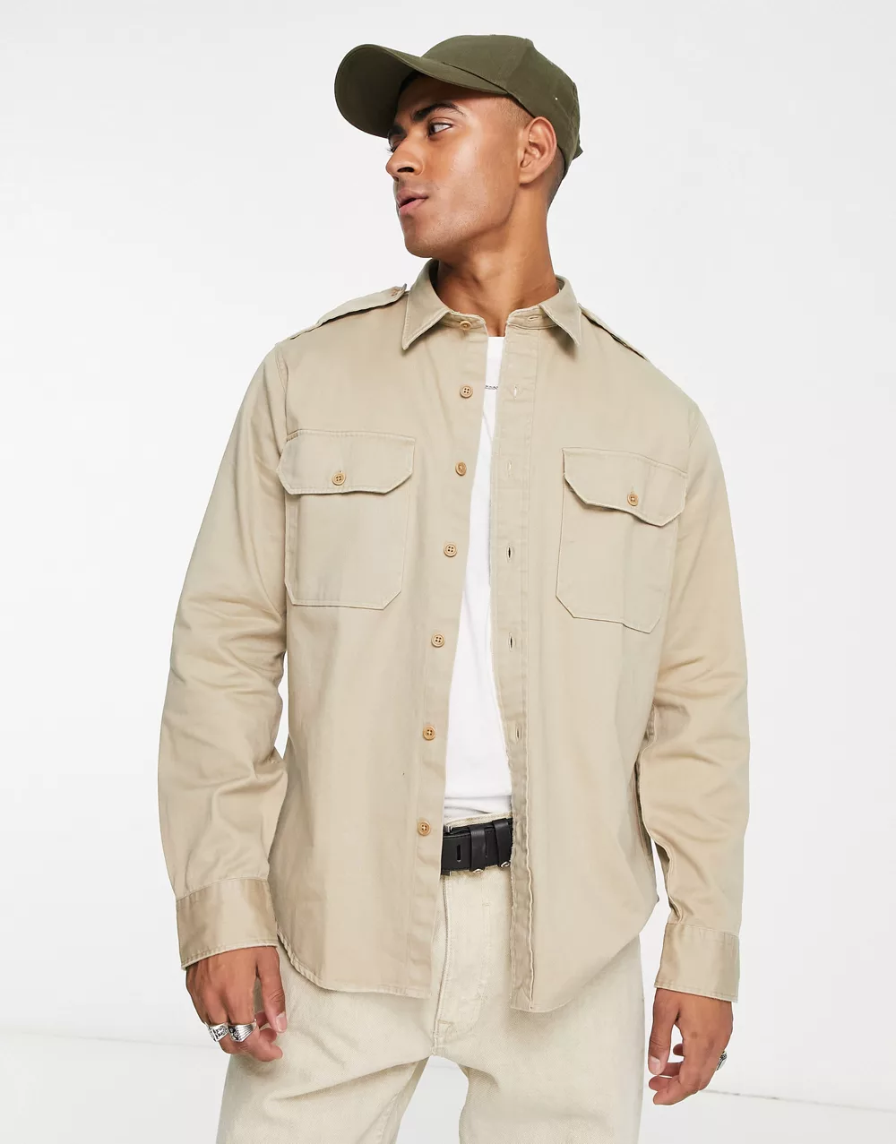 Polo Ralph Lauren slim fit pique grandad shirt with pony logo in black