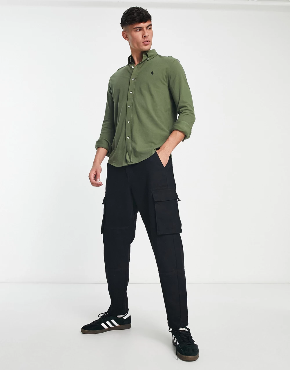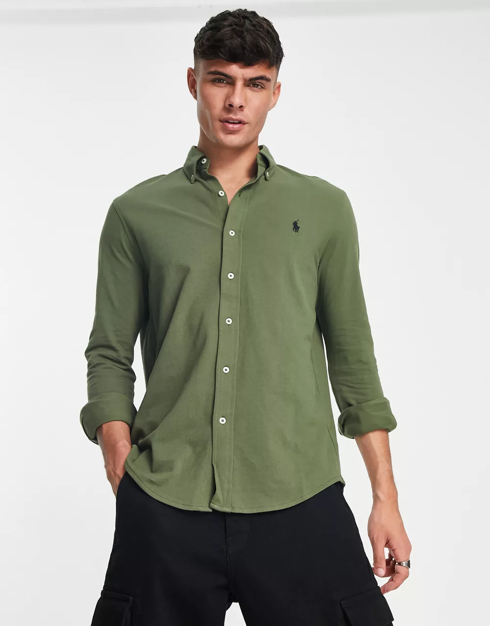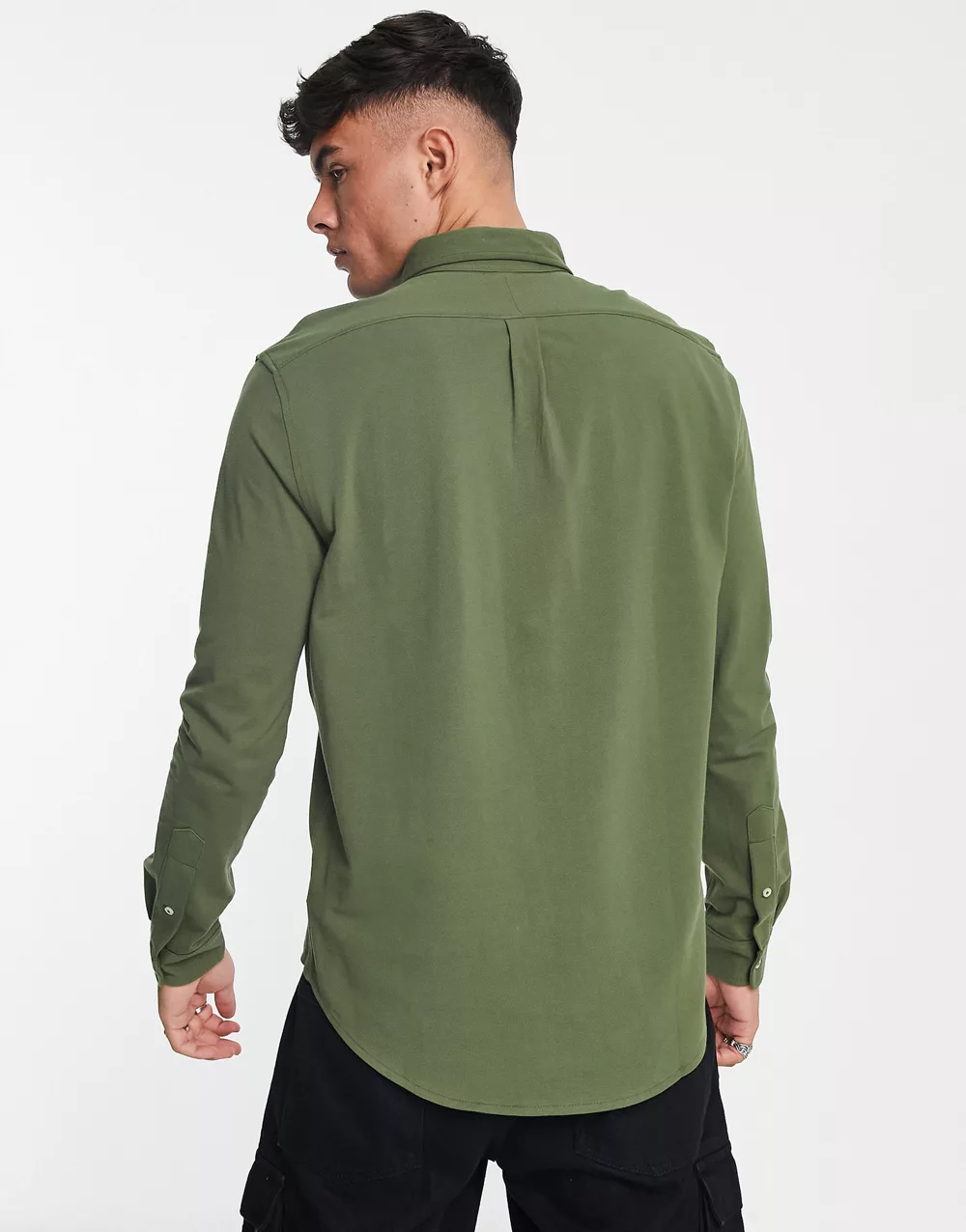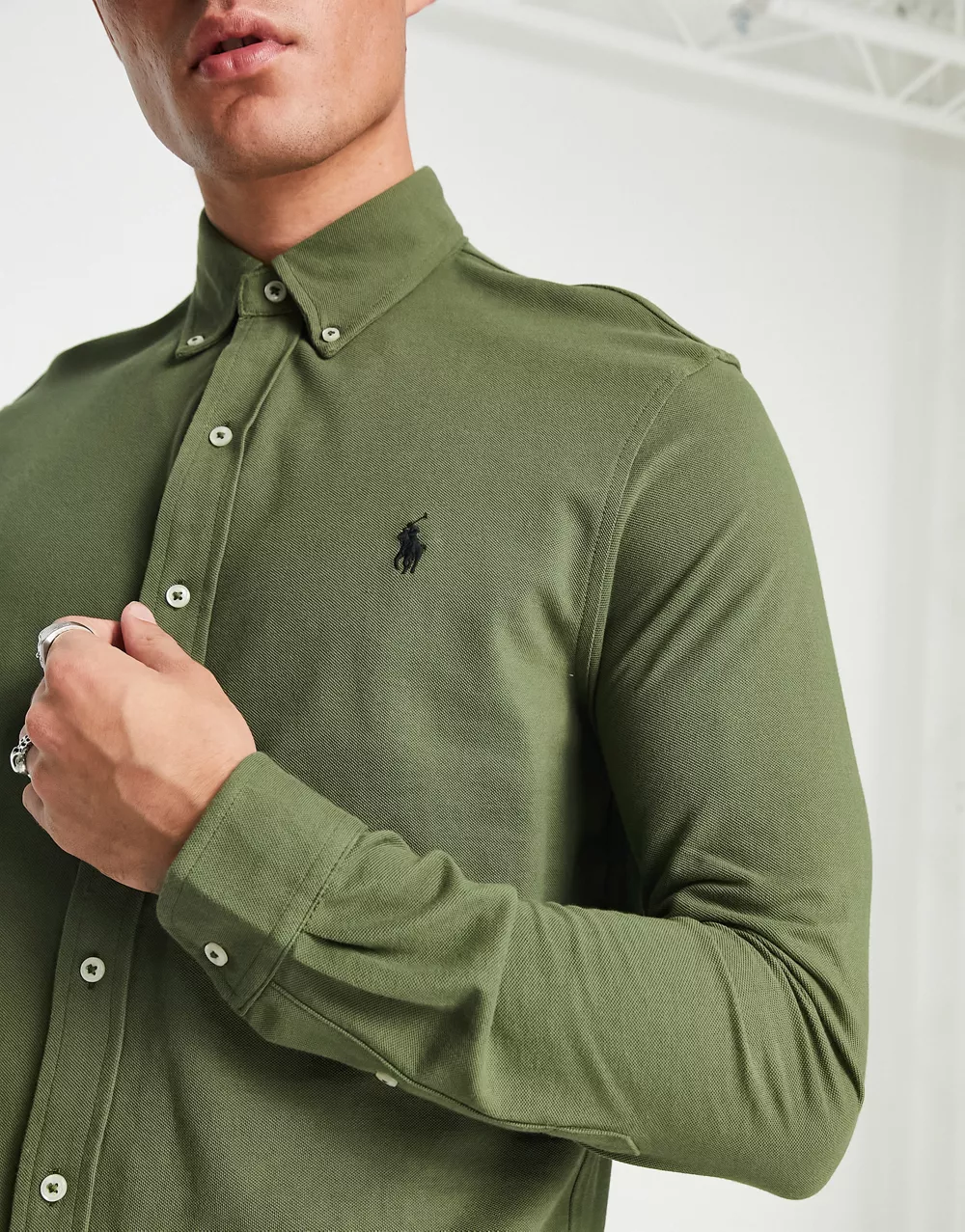 Polo Ralph Lauren pique shirt slim fit button down player logo in white