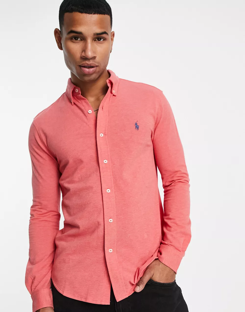 Polo Ralph Lauren icon logo slim fit pique polo in burgundy marl