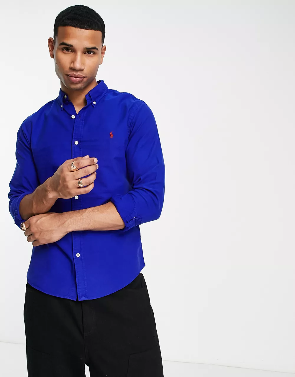 Polo Ralph Lauren icon logo slim fit poplin shirt in olive green