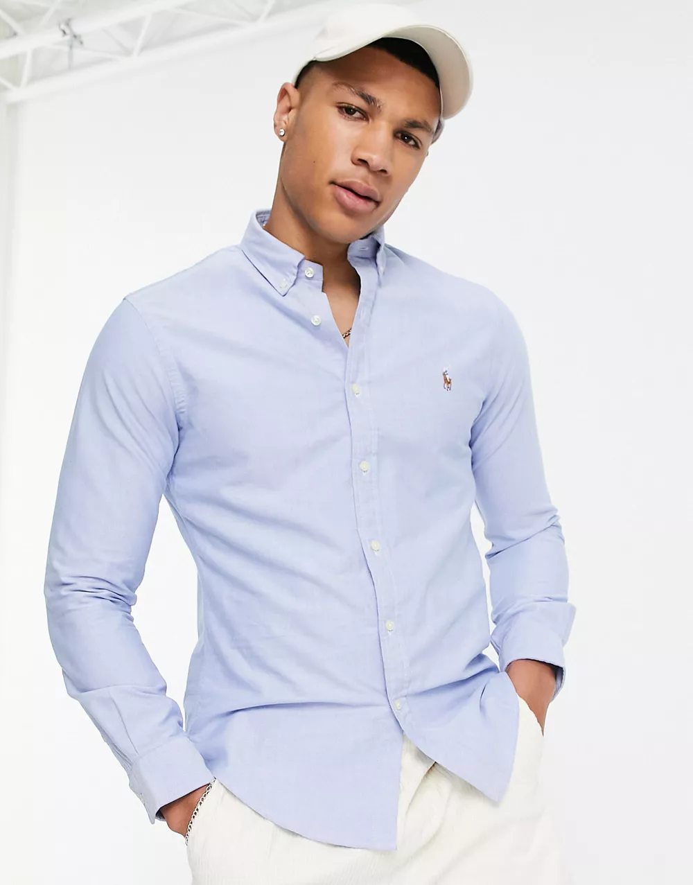 Tommy Hilfiger multi stripe oxford short sleeve shirt in blue