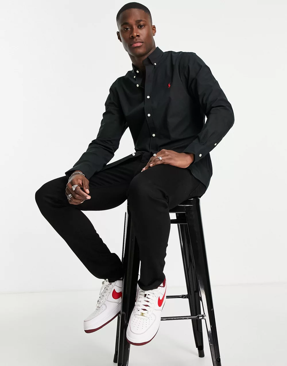 Polo Ralph Lauren icon logo estate collar jersey shirt in black