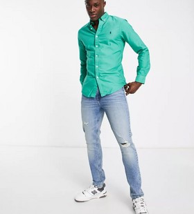 Polo Ralph Lauren tonal icon logo slim fit gament dyed twill shirt in royal blue