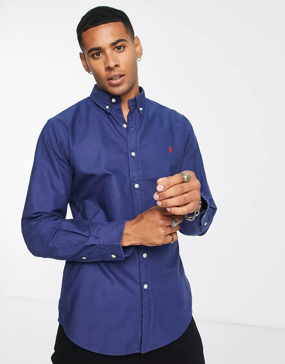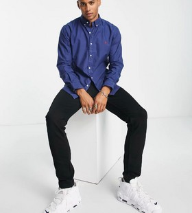 Polo Ralph Lauren slim fit short sleeve garment dyed oxford shirt with pony logo in navy