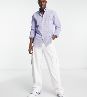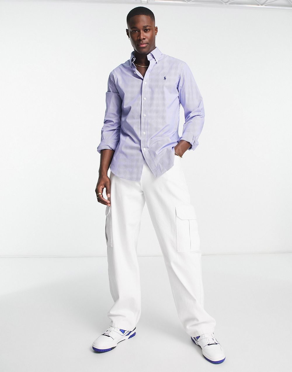 Polo Ralph Lauren icon logo slim fit gingham check poplin shirt in blue/white
