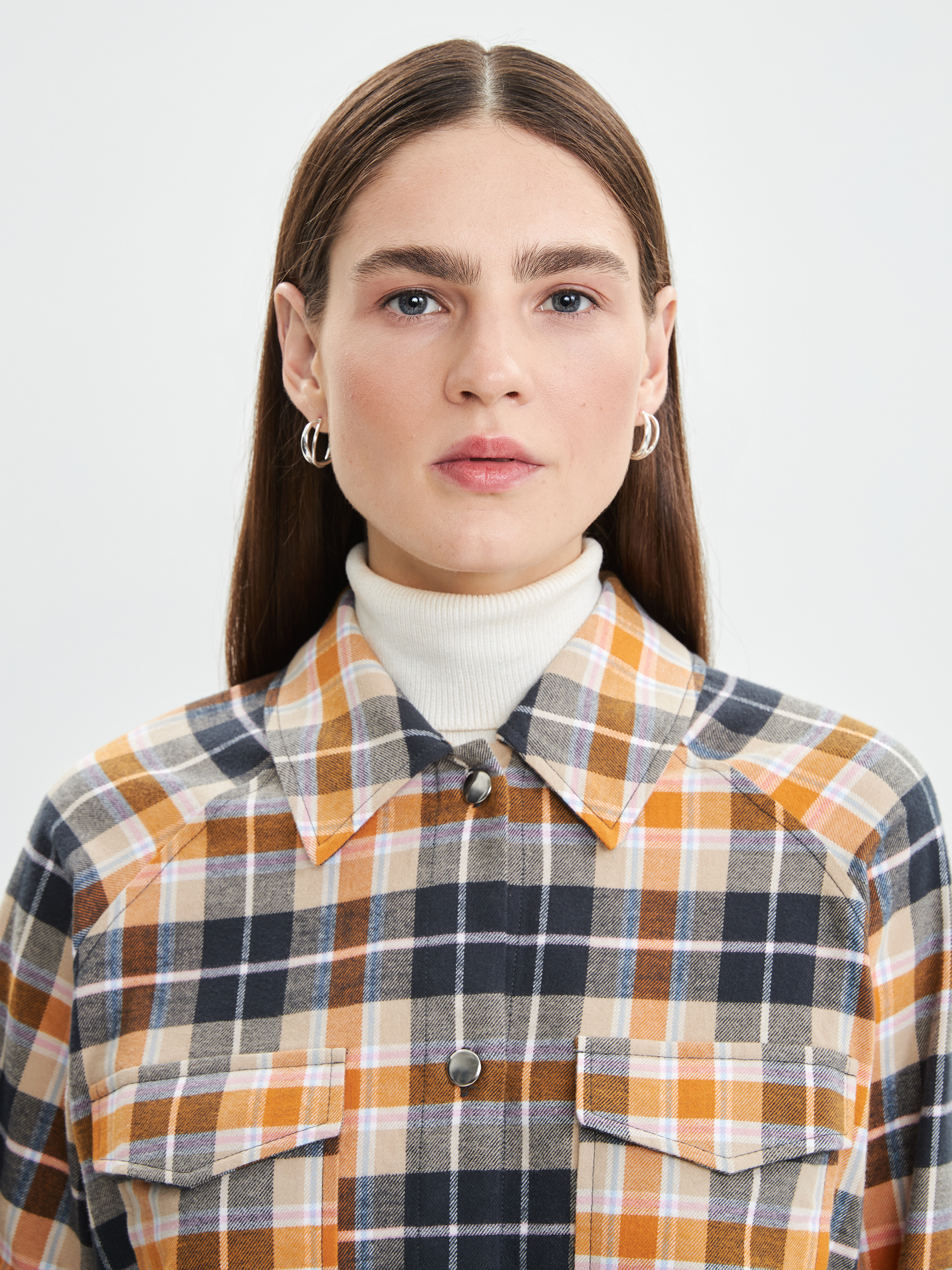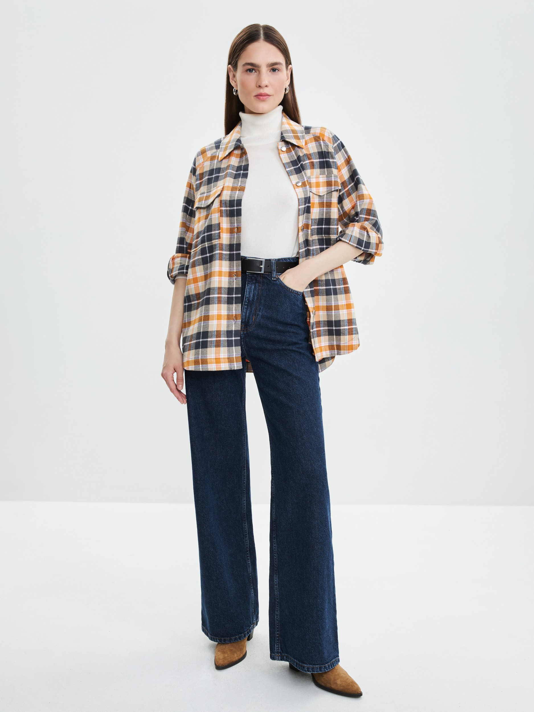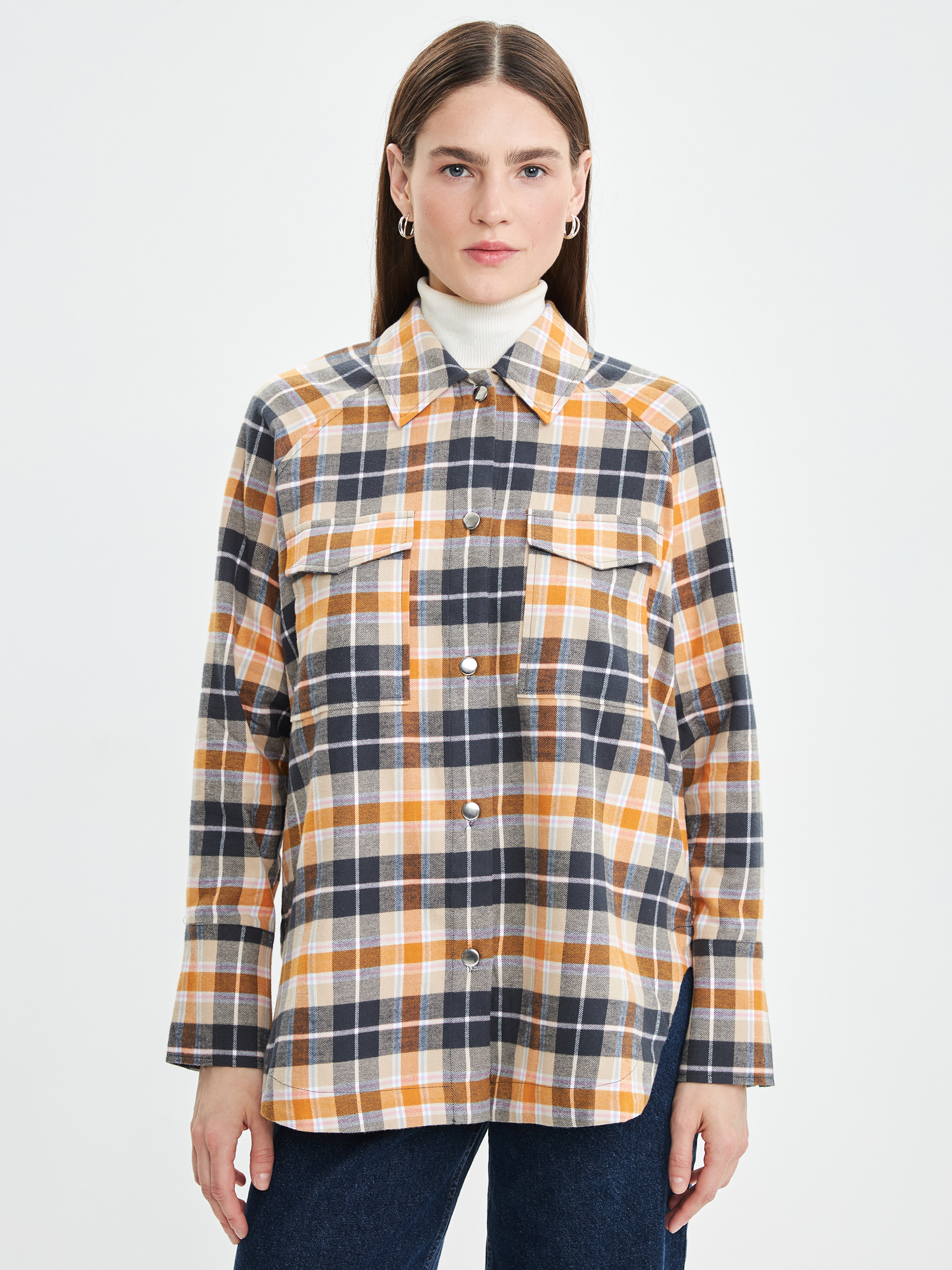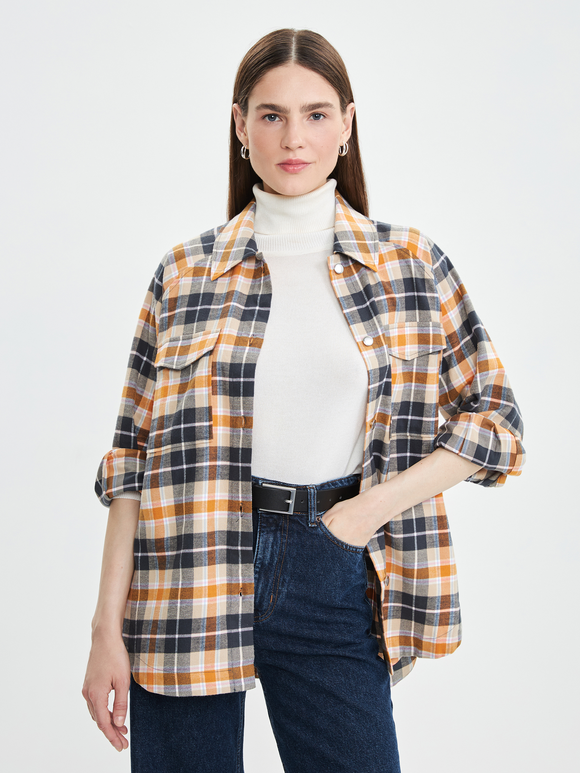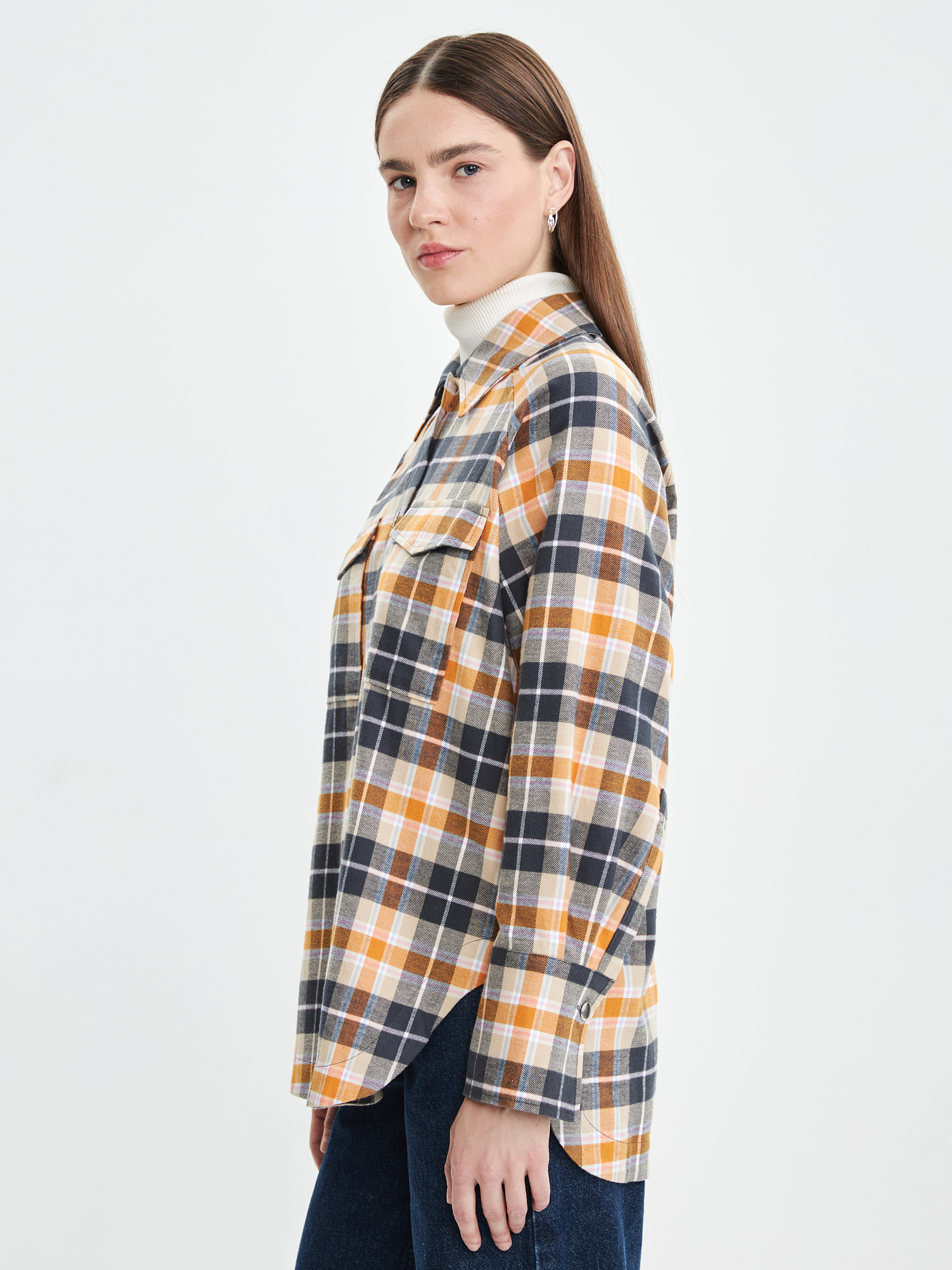 Параметры: Застежка: кнопки; Наличие карманов: накладной карман; Тип рукава: длинный; Вырез горловины: округлый; отложной воротничок