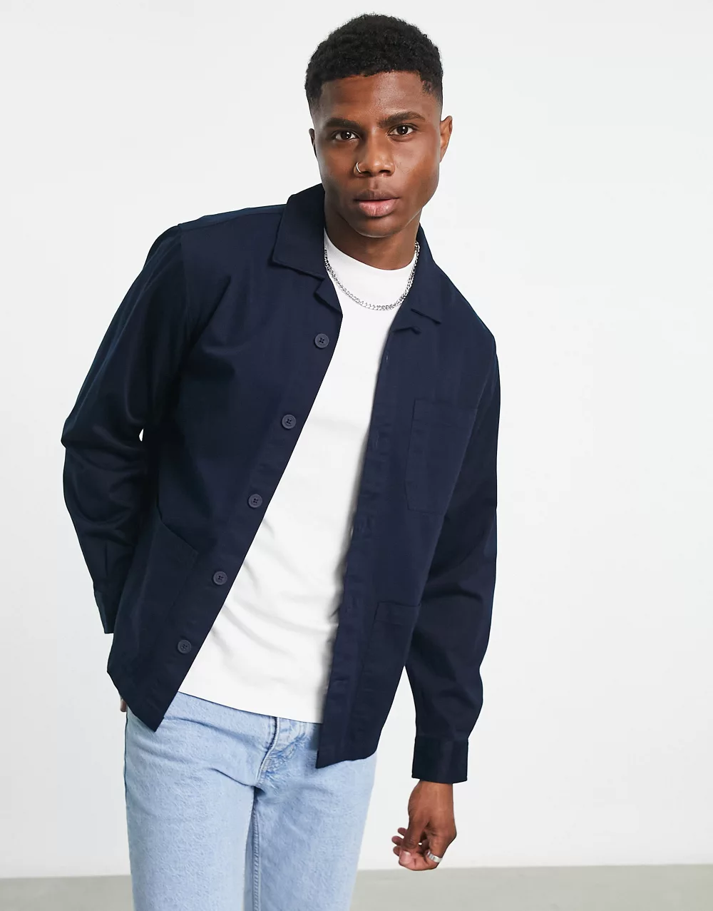 Tommy Jeans cotton flag logo workwear overshirt in beige - BEIGE