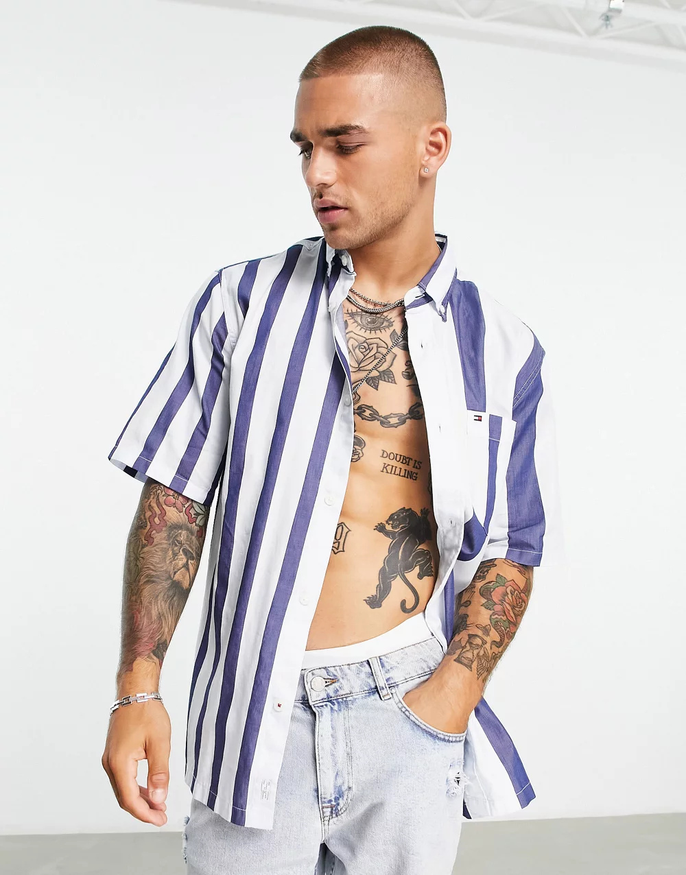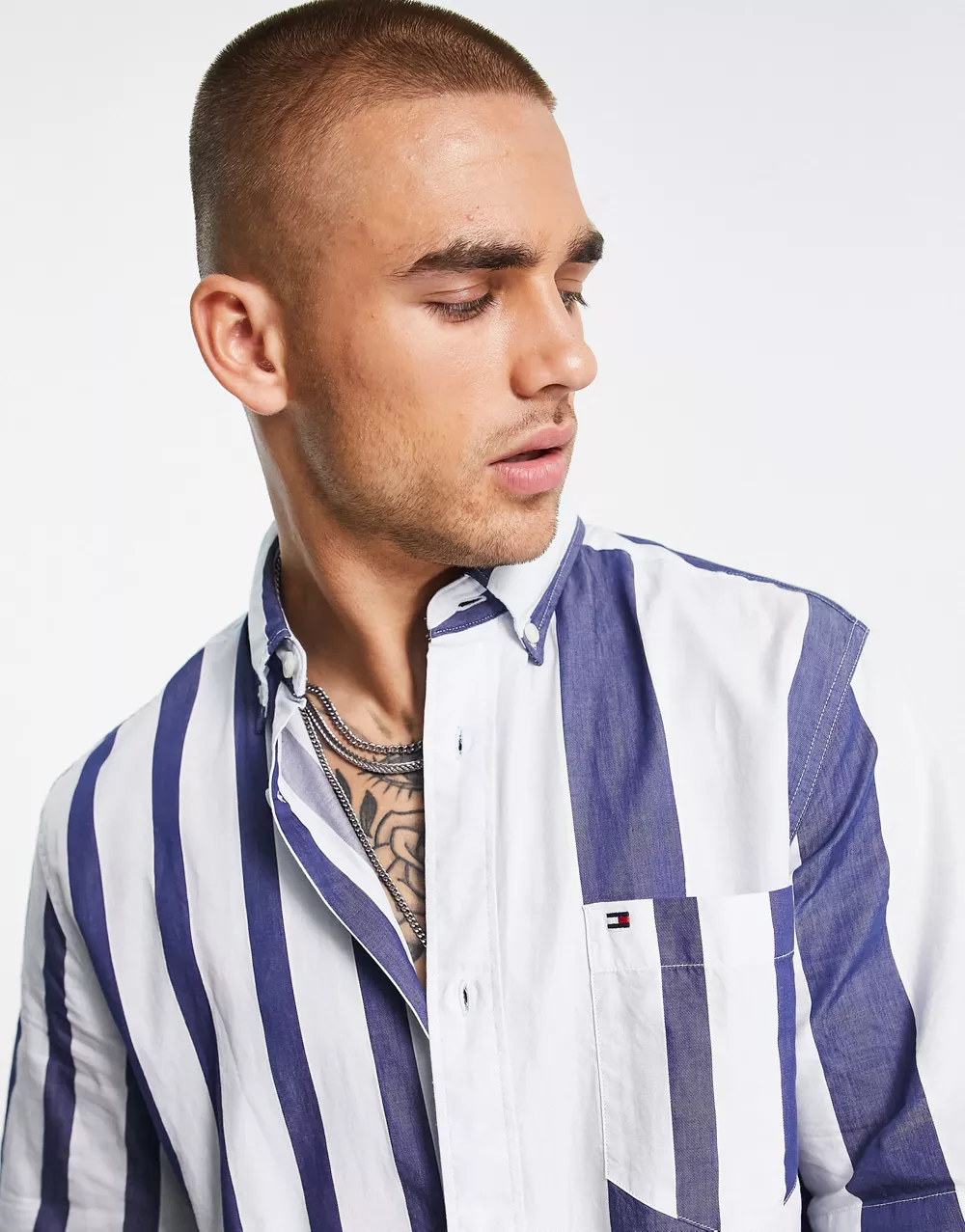 Polo Ralph Lauren icon logo varied stripe pique polo in white multi