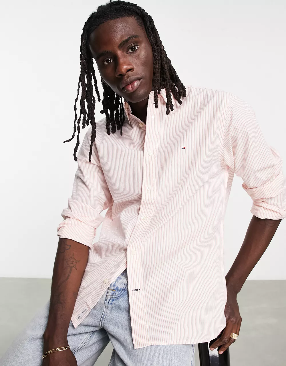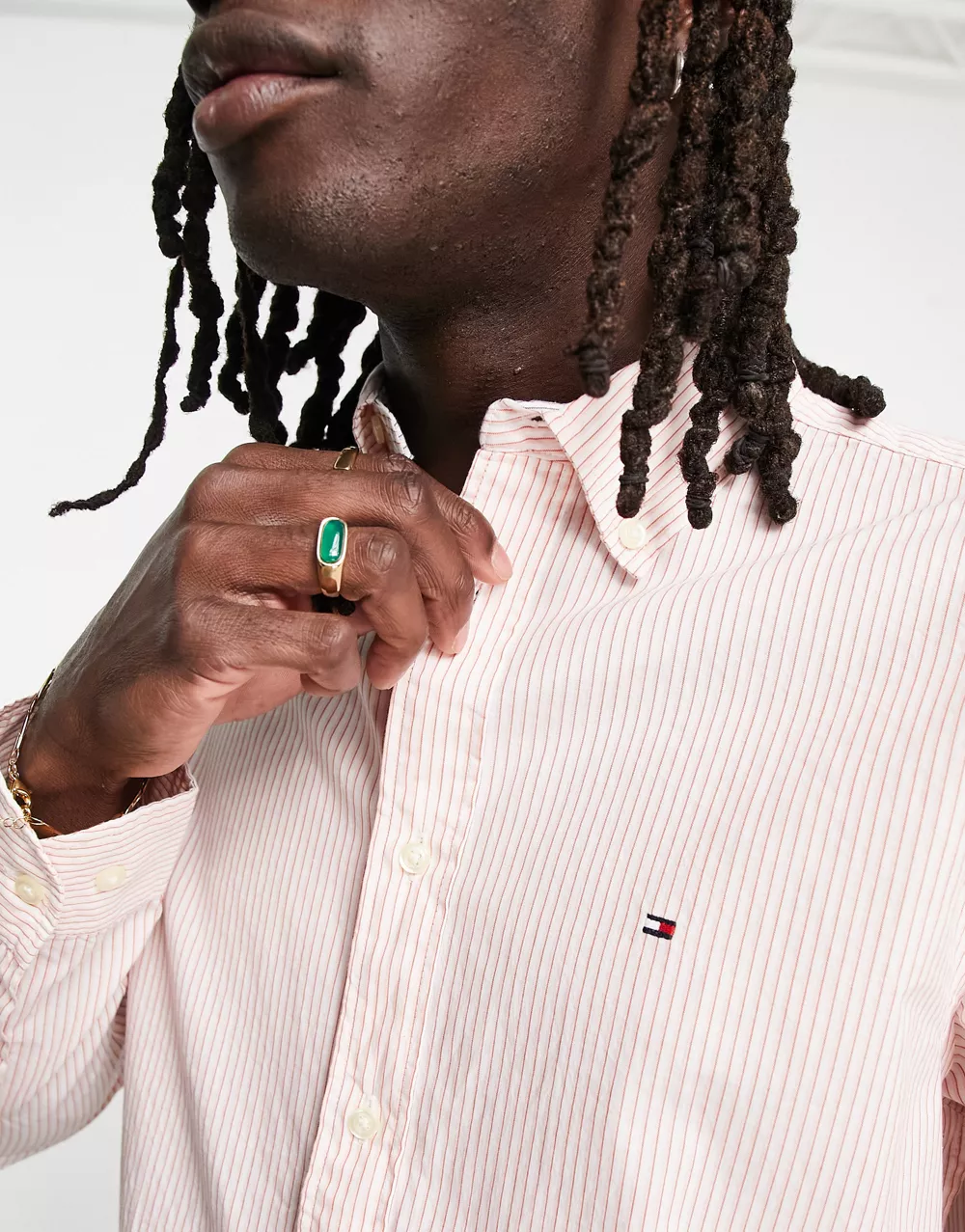 Tommy Hilfiger flag logo stretch slim fit cotton t-shirt in mid blue
