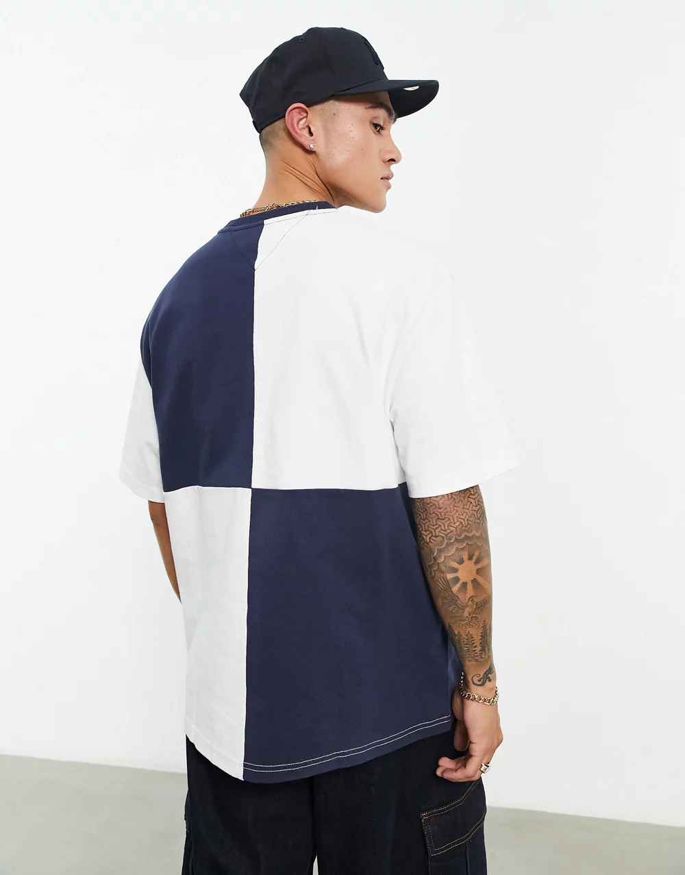 Tommy Jeans badge logo stripe long sleeve top relaxed fit in navy