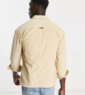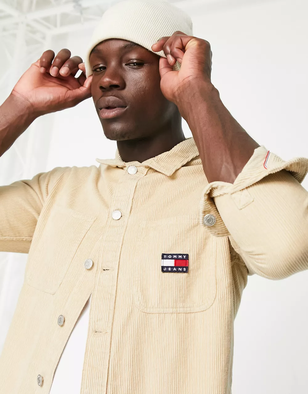 Tommy Jeans ASOS exclusive heritage capsule logo back check overshirt in beige