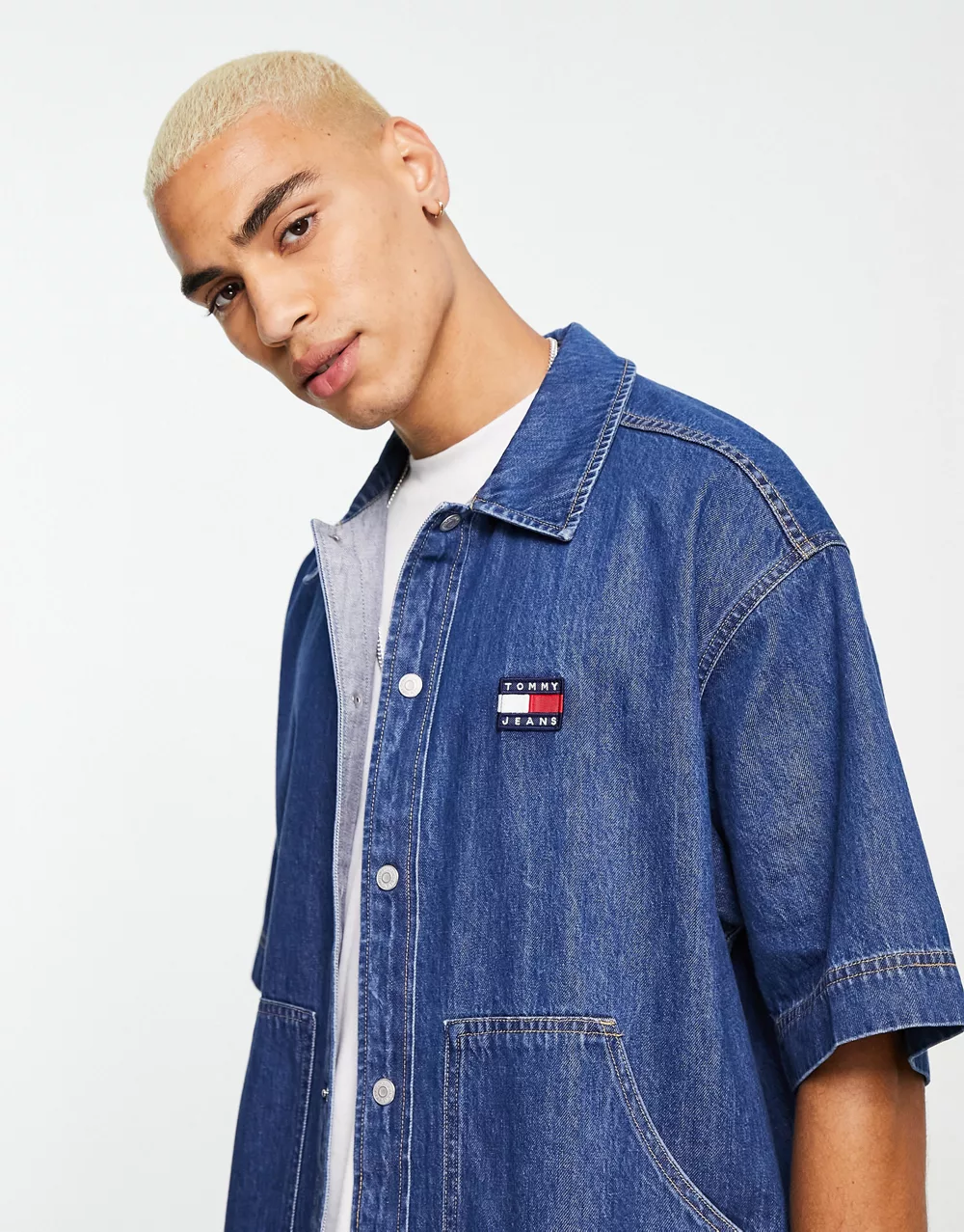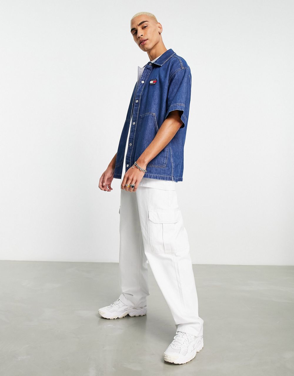 Tommy Jeans flag & back logo denim overshirt in light wash