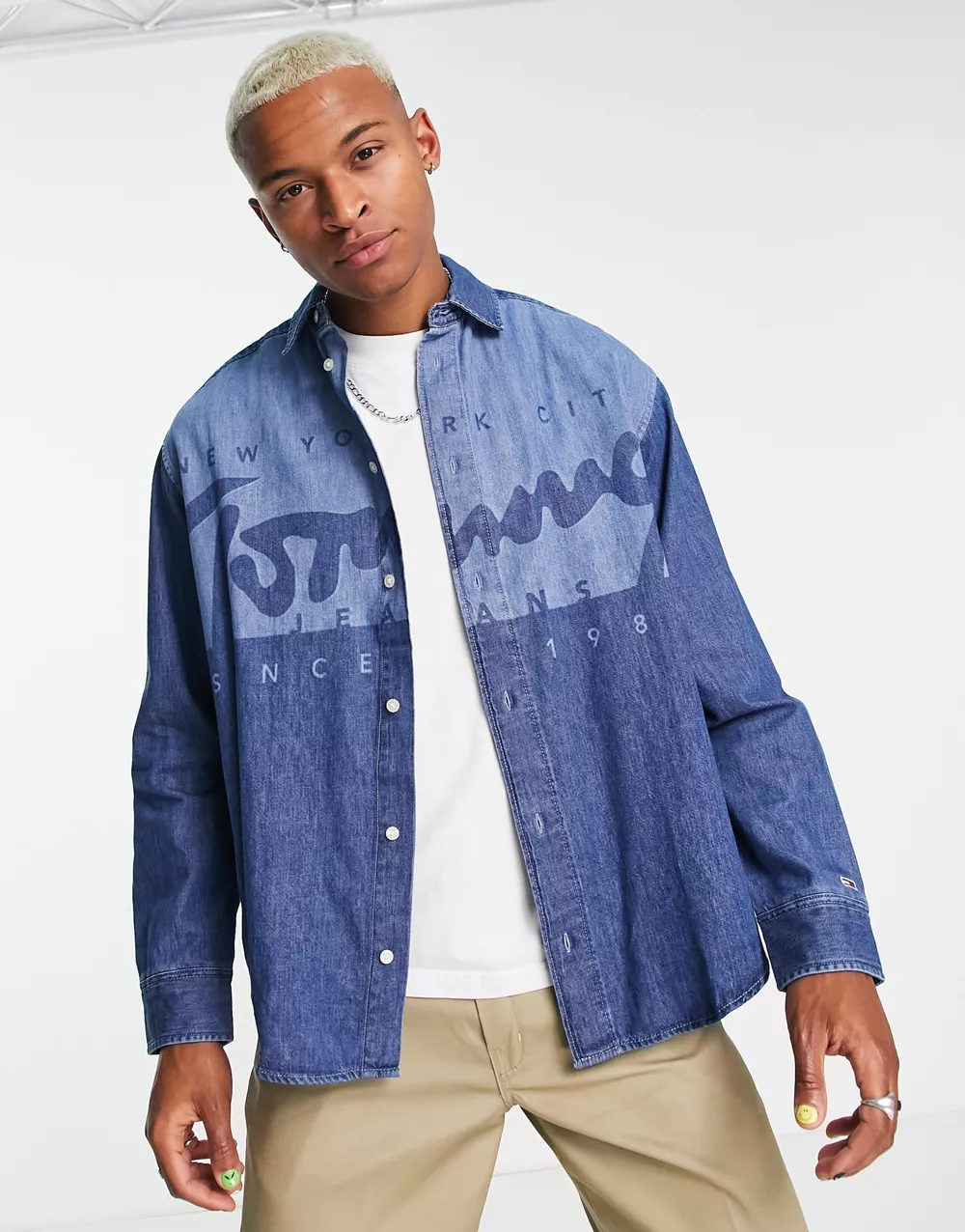 Tommy Hilfiger bandana patchwork print short sleeve shirt regular fit in navy