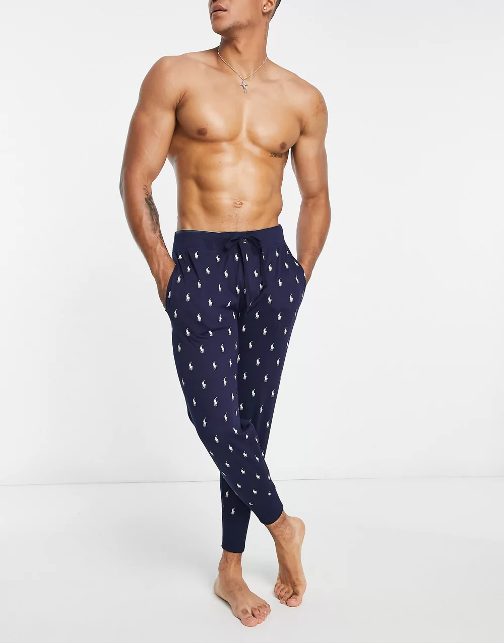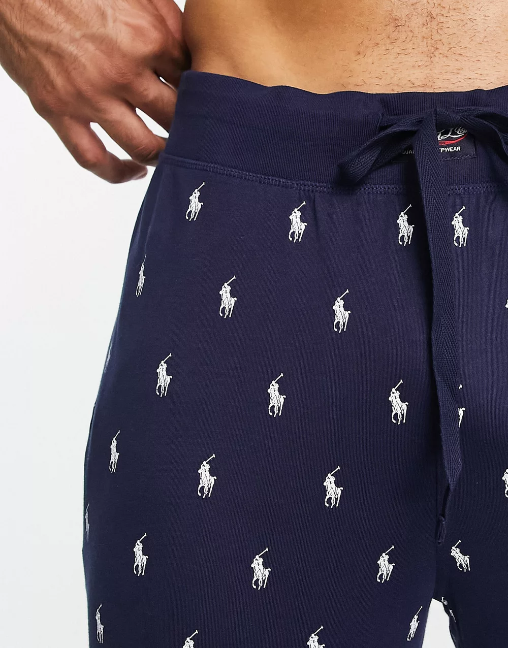 - Polo Ralph Lauren lounge jogger in navy with all over print logo