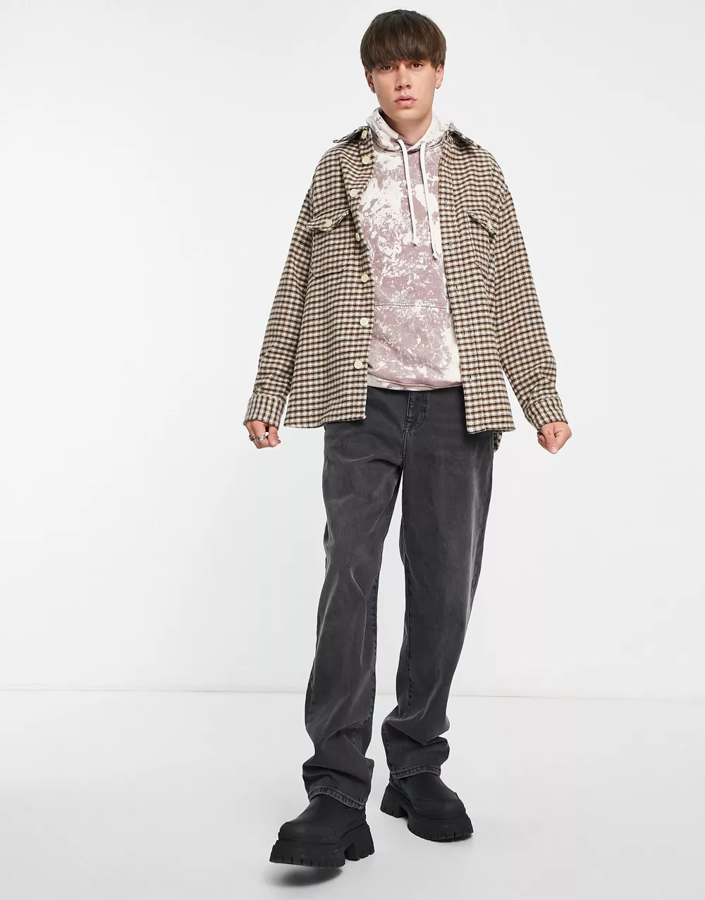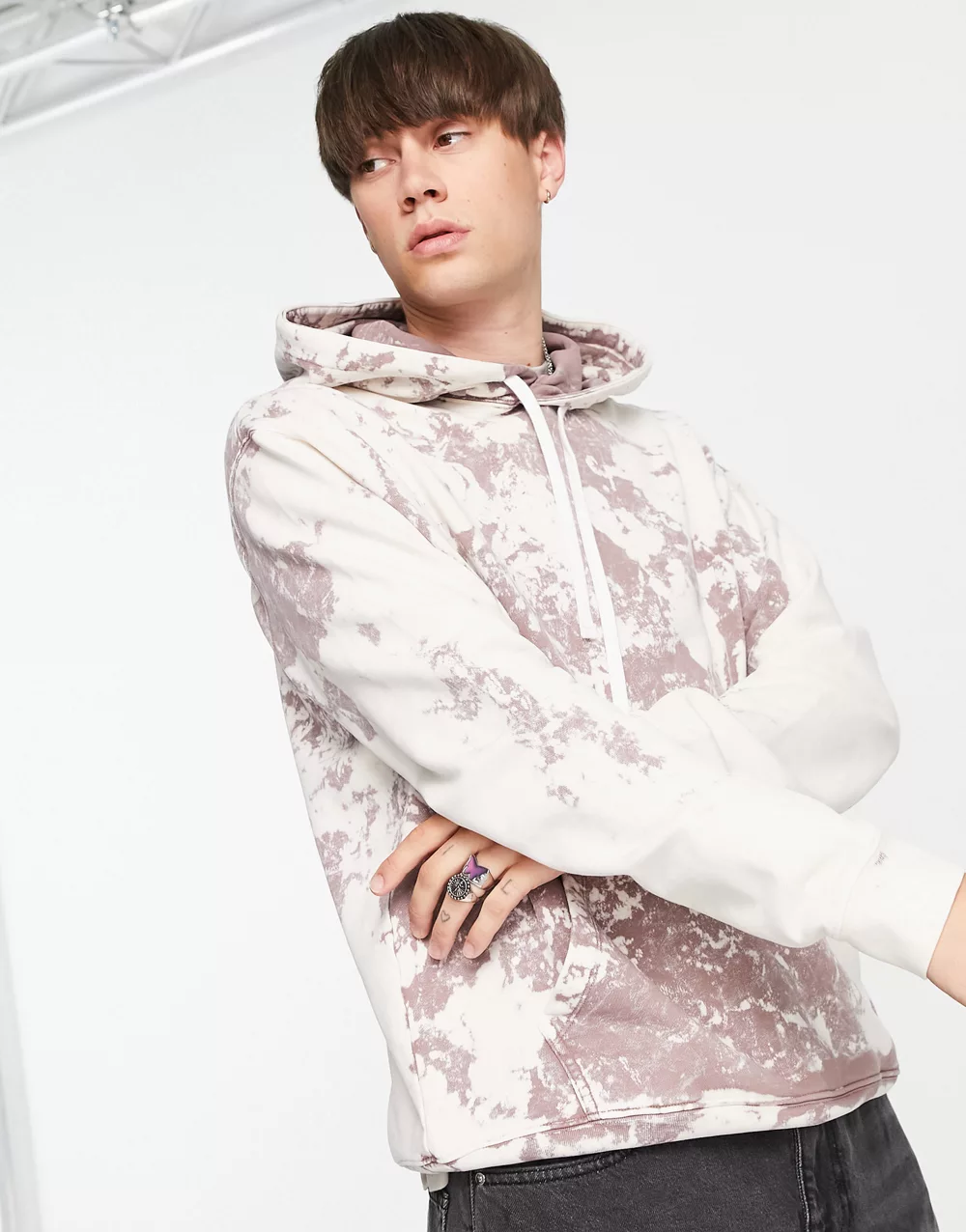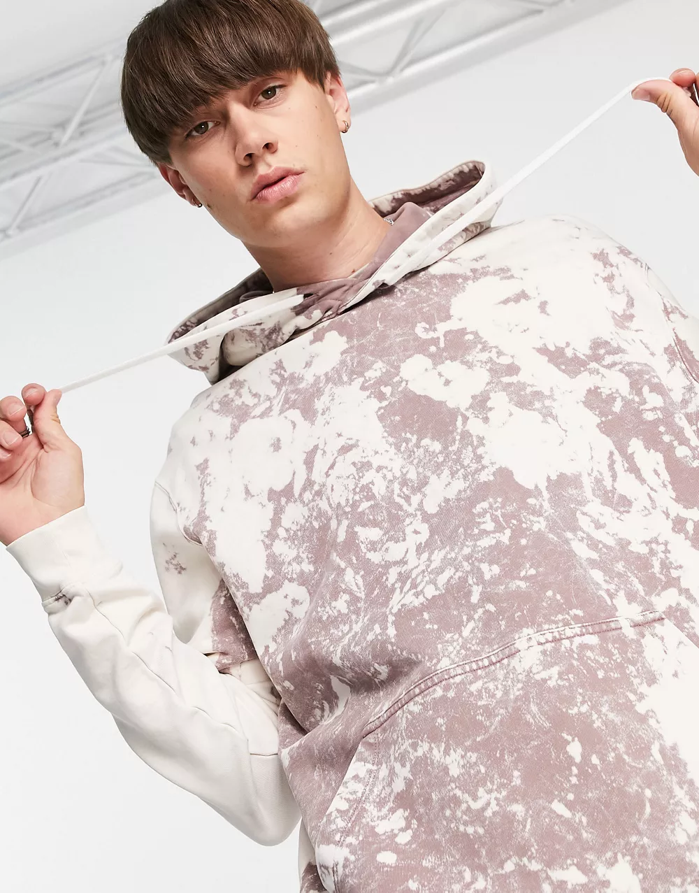 - AllSaints Ace hoodie in beige and mauve purple acid wash